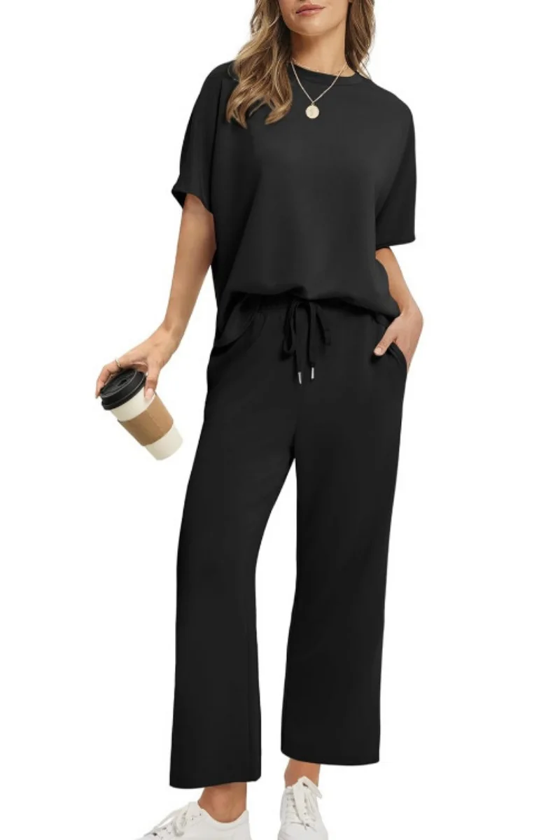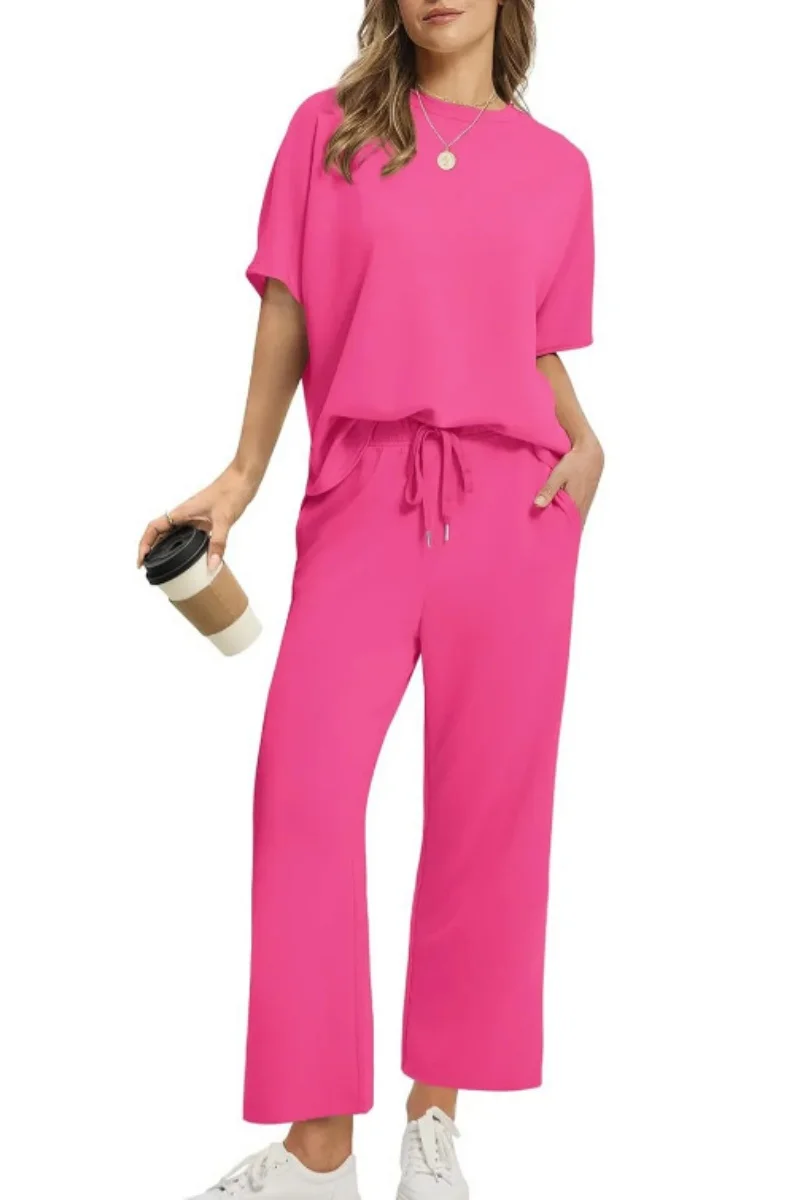 Experience effortless elegance with our Stylish and Comfortable Fashion set, perfect for any occasion. This two-piece ensemble features a flattering wide-leg pant and a relaxed-fit top, crafted from soft jersey fabric for all-day comfort. Available in a range of rich colors, it seamlessly combines luxury with versatility. Ideal for home lounging or casual outings, this set is designed for every body, offering a confident fit and timeless style. Embrace sophistication and make a statement effortlessly.