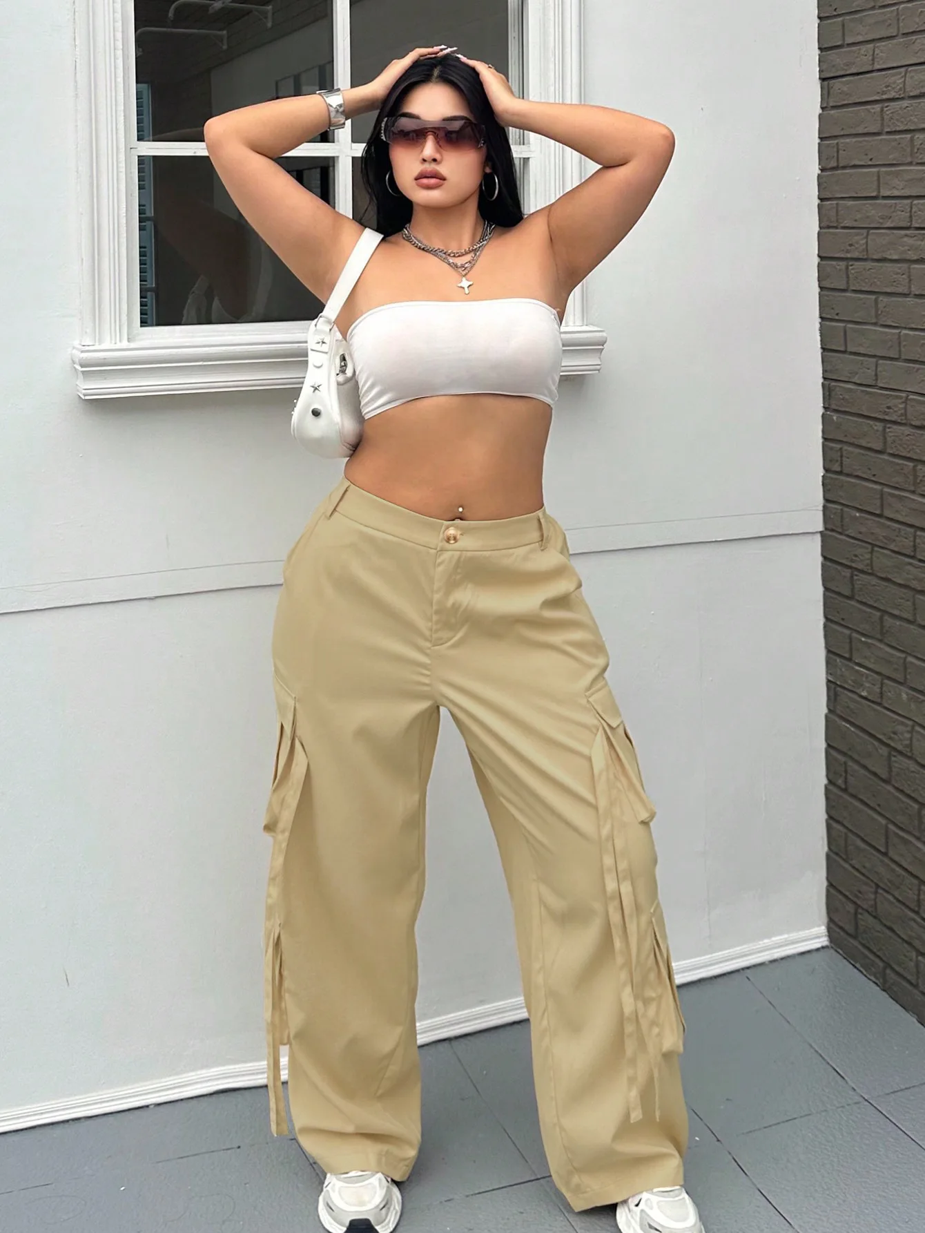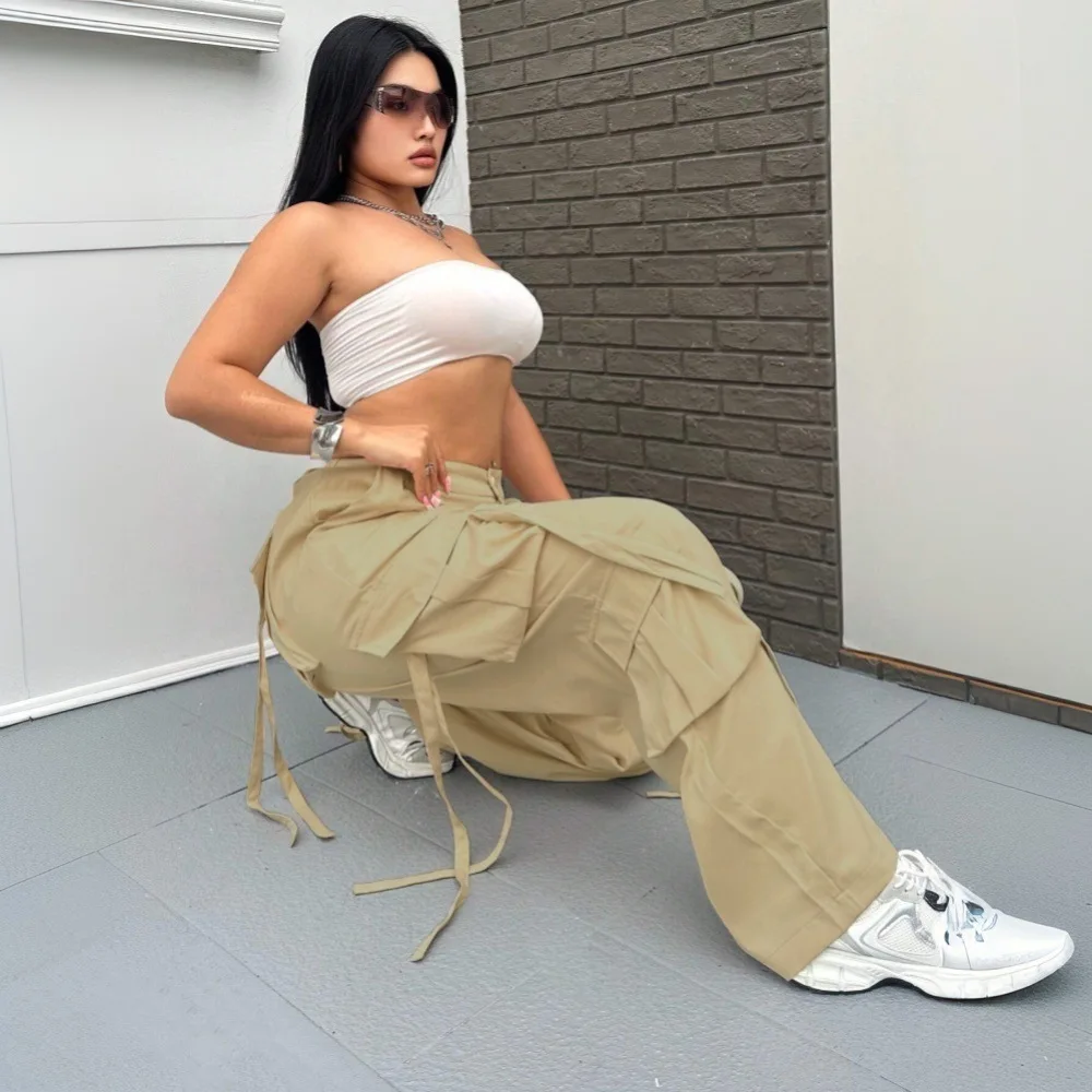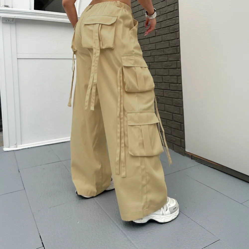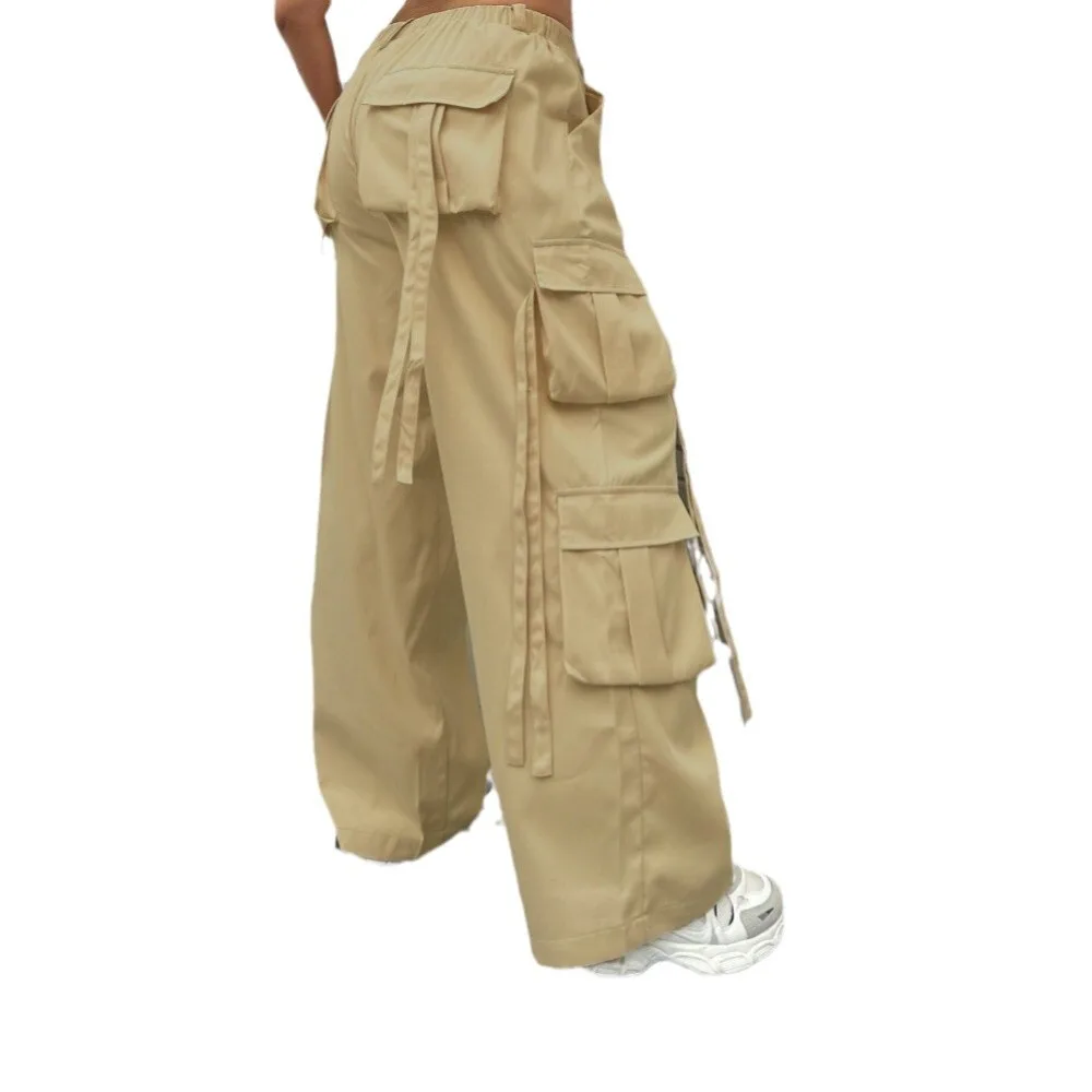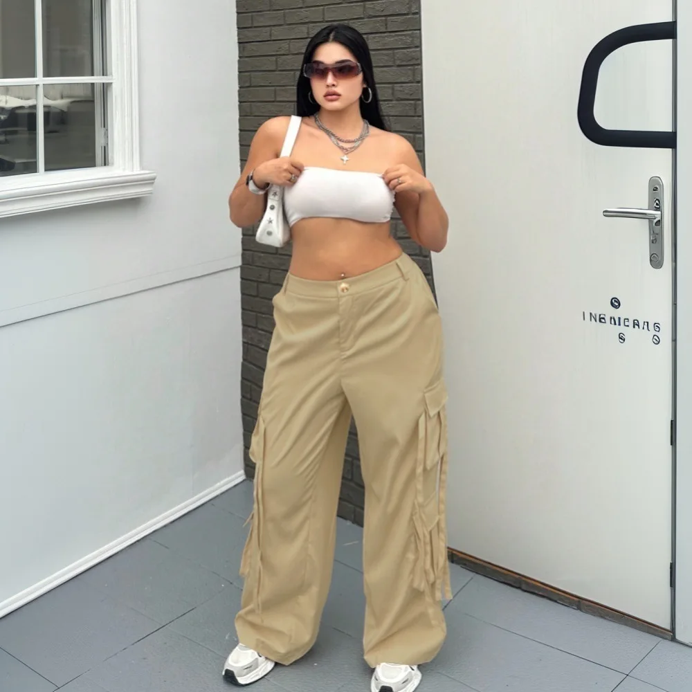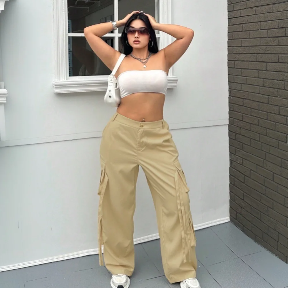 Large Size Women’s American Workwear Casual Pants for Spring and Summer , New Personalized Street Wide Leg Pants
