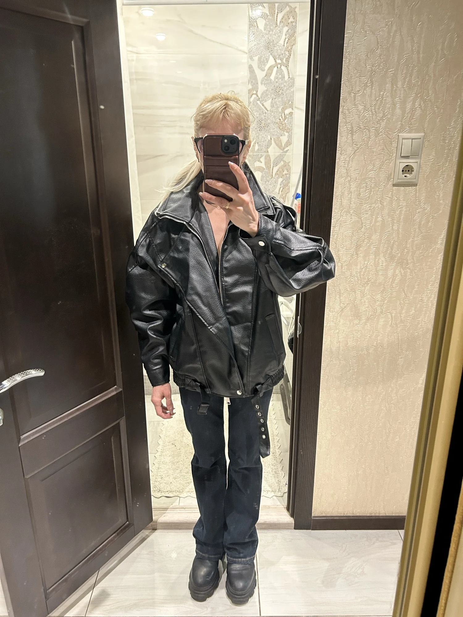 27 reviews for Luxe Brown Oversized Faux Leather Jacket – Bold Style Statement