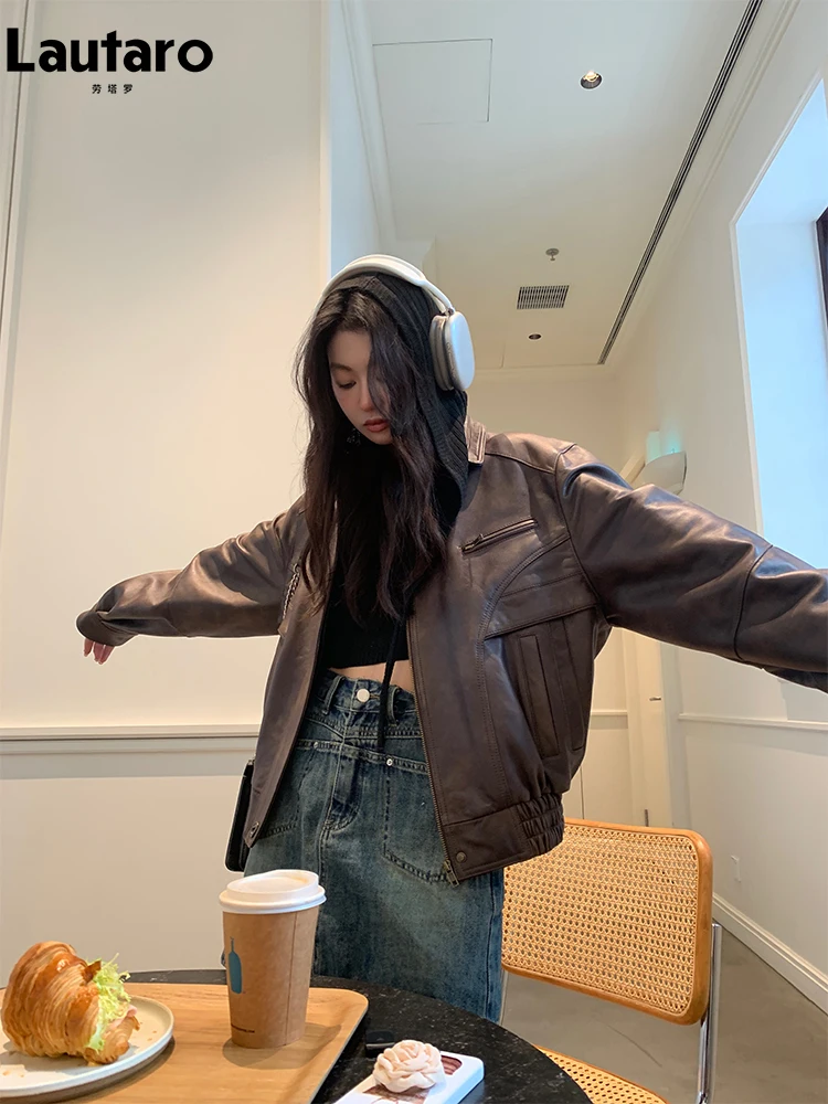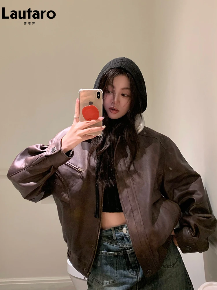 With the Lautaro Spring Autumn Cool Retro Waterproof Distressed Brown PU Leather Jacket, embrace your individuality and express your unique style. This piece is a testament to the perfect blend of luxury, comfort, and practicality, making it a must-have for every fashion-forward woman.