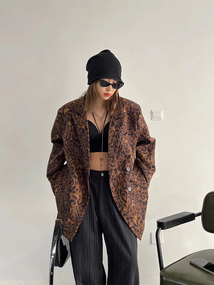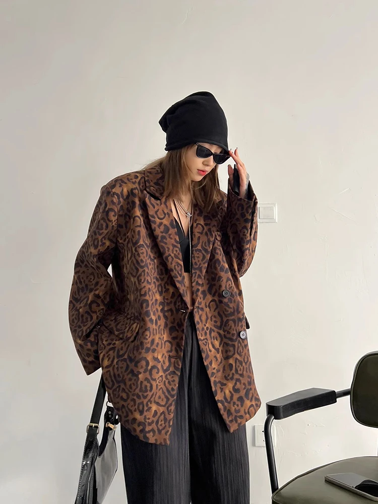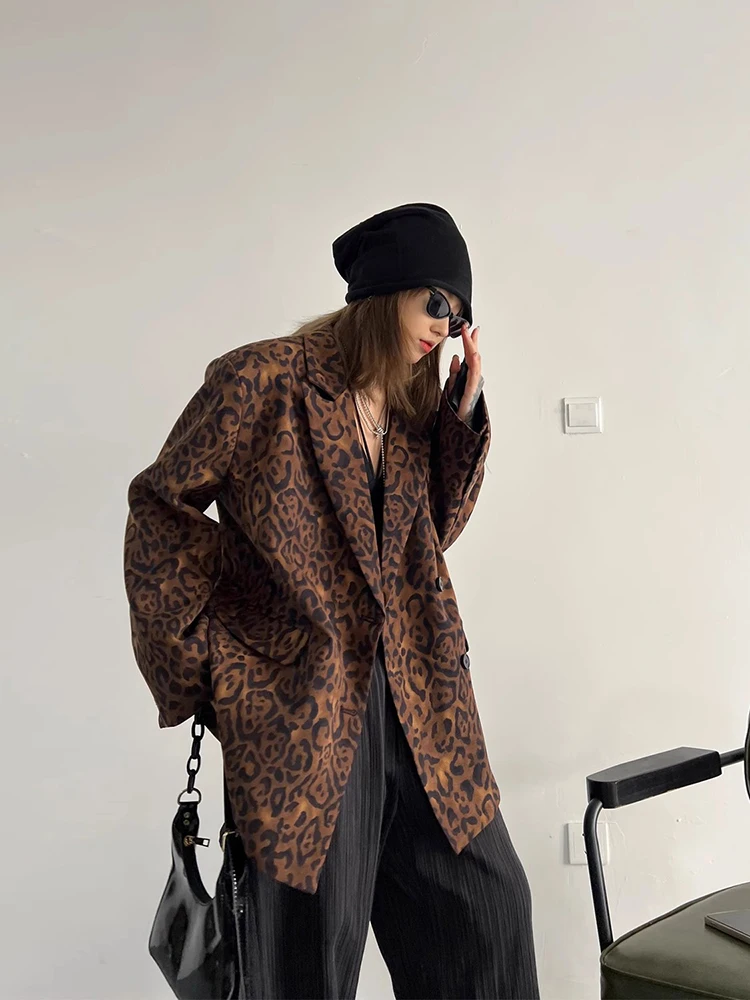 Leopard Print Blazer with Loose Fit for Autumn