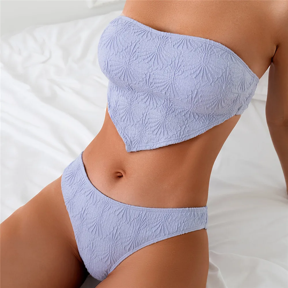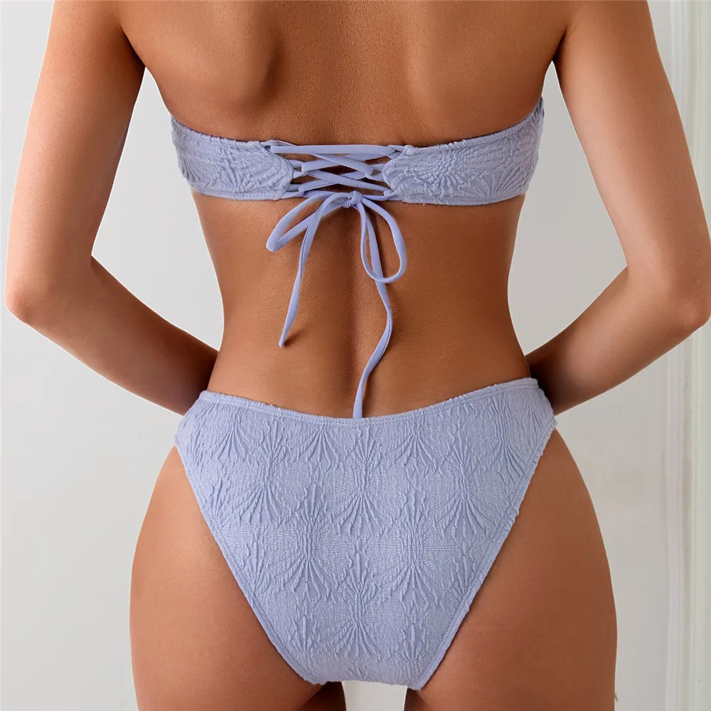 Choose the Light Purple Bandeau Bikini Set for a blend of luxurious comfort and timeless elegance, making every beach outing a moment to cherish.