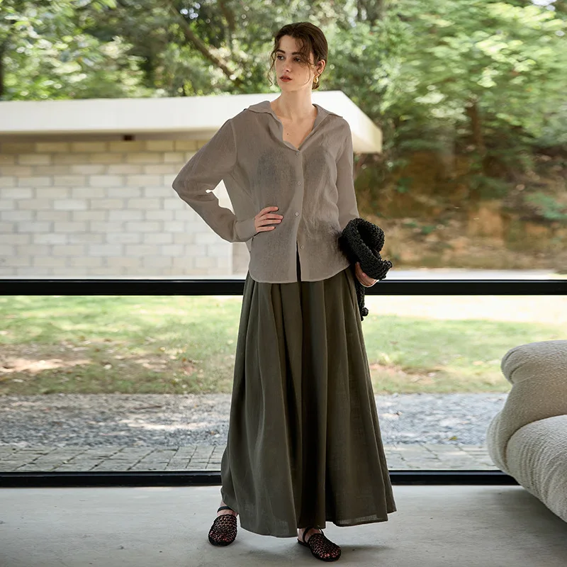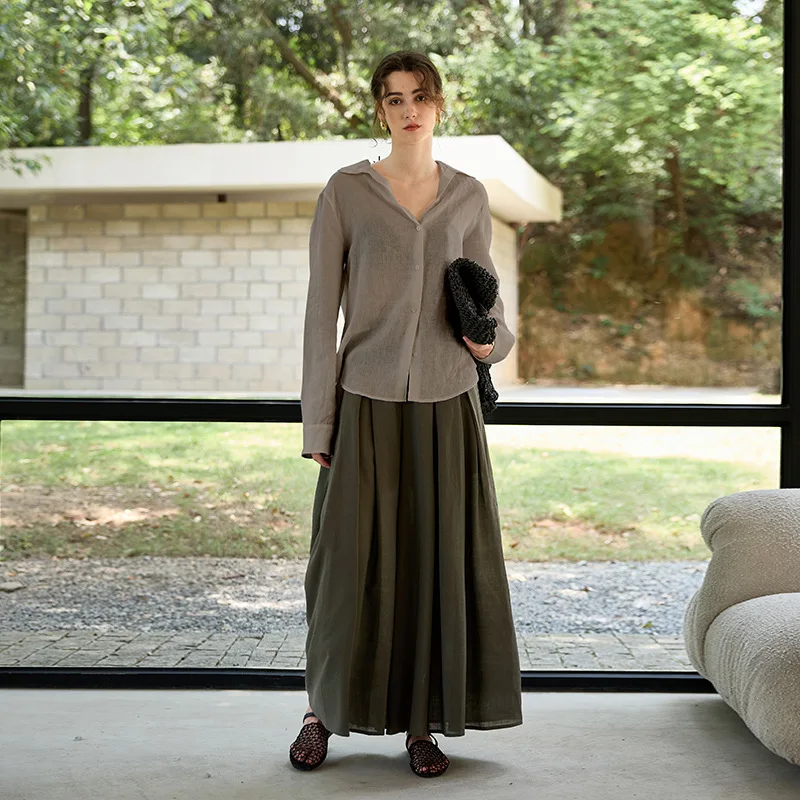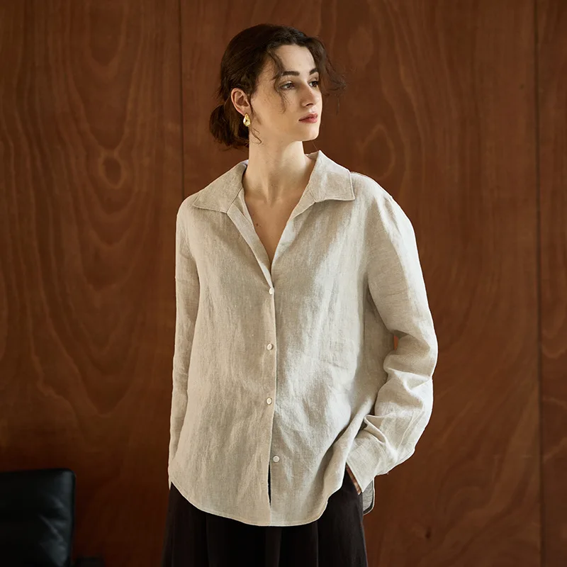Elevate your professional wardrobe with the Linen Blend Long Sleeve Office Blouse, designed to combine modern minimalism with refined detailing. This blouse features a subtle V-neckline and a slim fit silhouette that gracefully enhances your natural shape, making it an ideal choice for those who appreciate understated elegance in their workwear.