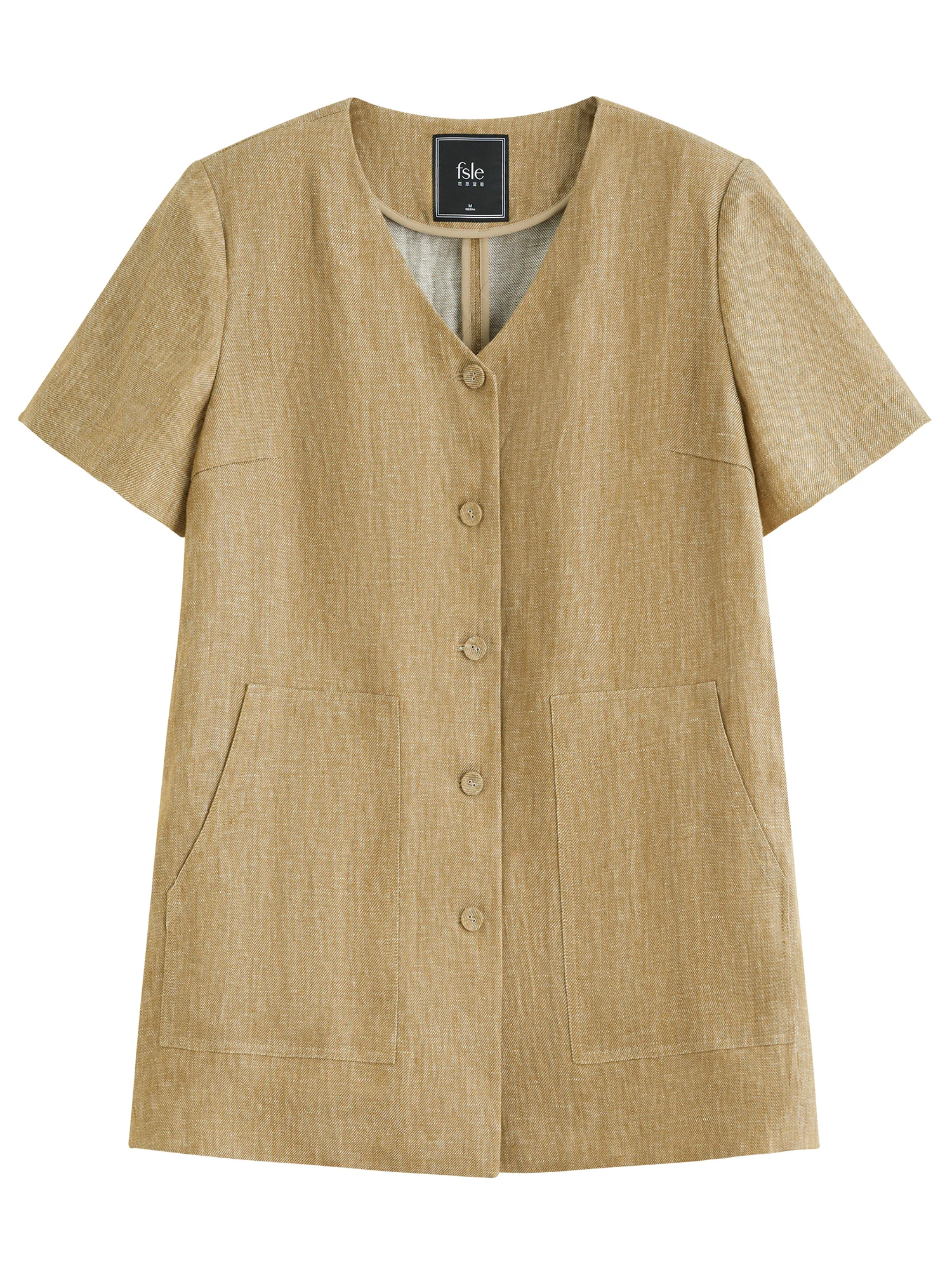 - Features a flattering V-neckline and single-breasted closure
