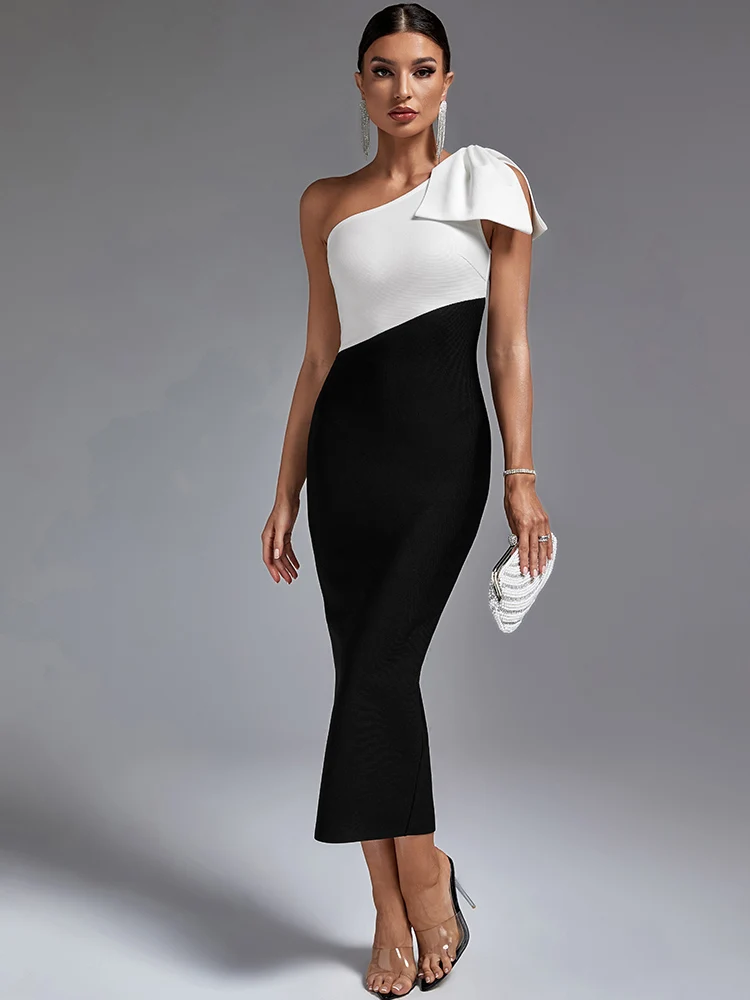 Step into the spotlight with the Long Bandage Dress, a captivating one-shoulder maxi that epitomizes elegance and allure. Designed for women who command attention, this stunning dress seamlessly blends style and comfort, making it the perfect choice for parties, weddings, and cocktail events. With its sleek silhouette and refined color block design, this dress is bound to make you the center of admiration.