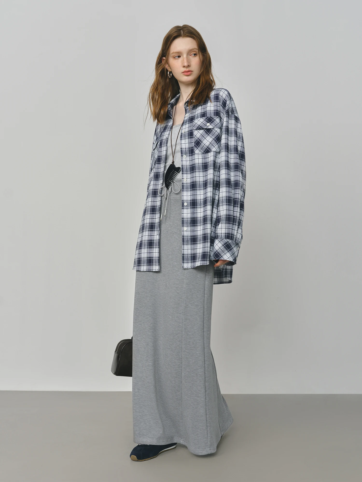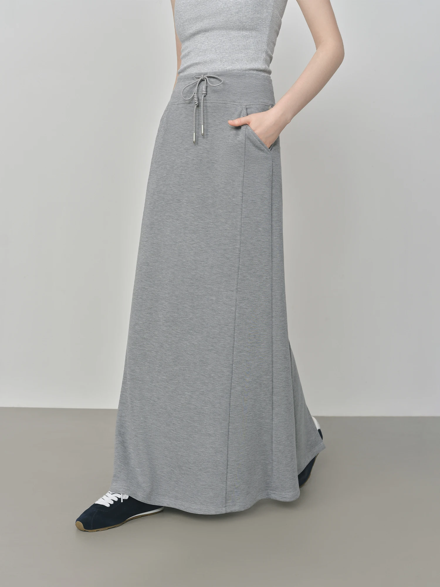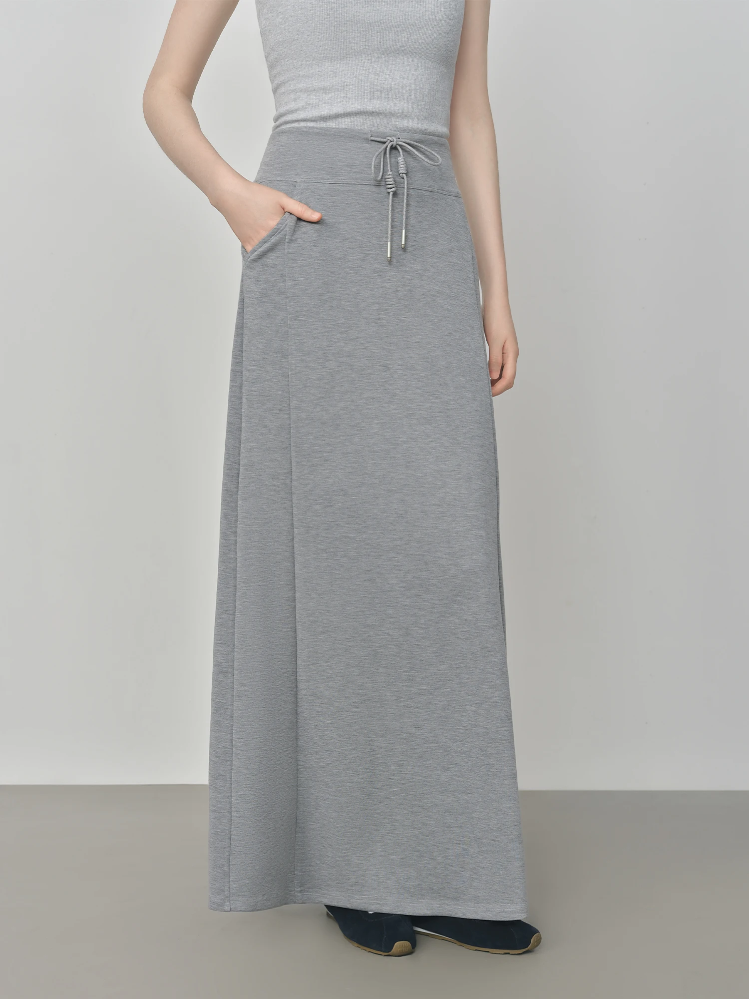 Embodying a refined simplicity, this Loose Gray A-line Slit Maxi Skirt is designed to offer both comfort and understated sophistication for the modern woman. The empire waist gently shapes the silhouette while allowing ease of movement, complemented by a tasteful slit that introduces subtle fluidity to the ankle-length hemline. Its muted grey tone aligns with a minimalist palette, making it a versatile addition to your autumn and winter wardrobe.