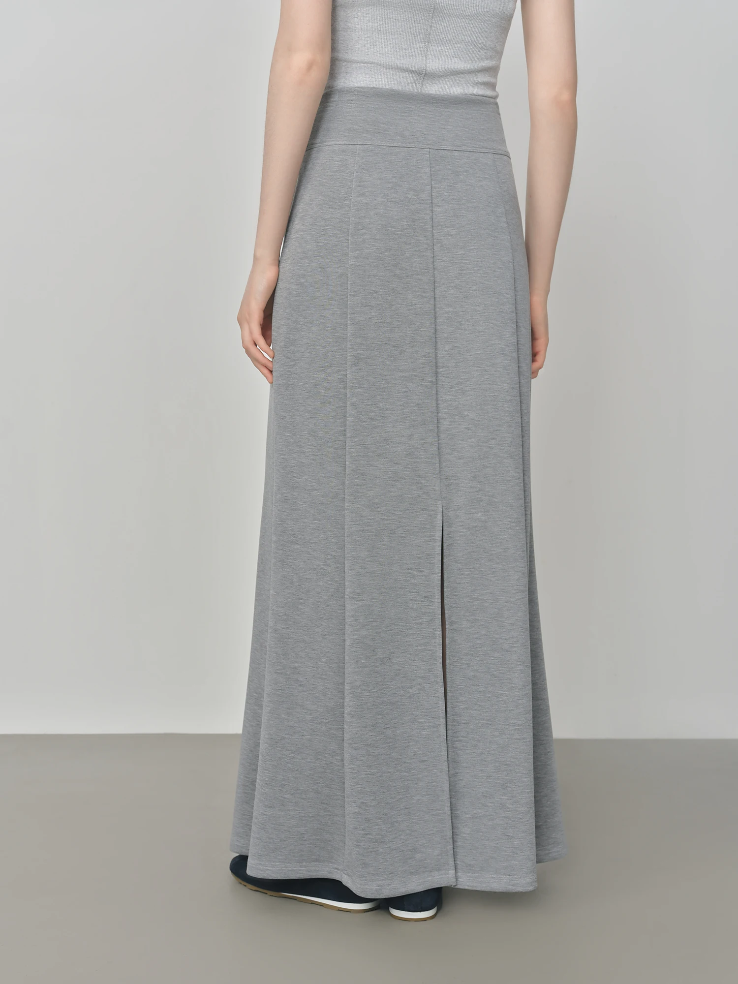 Loose Gray A-line Slit Maxi Skirt with Empire Waist