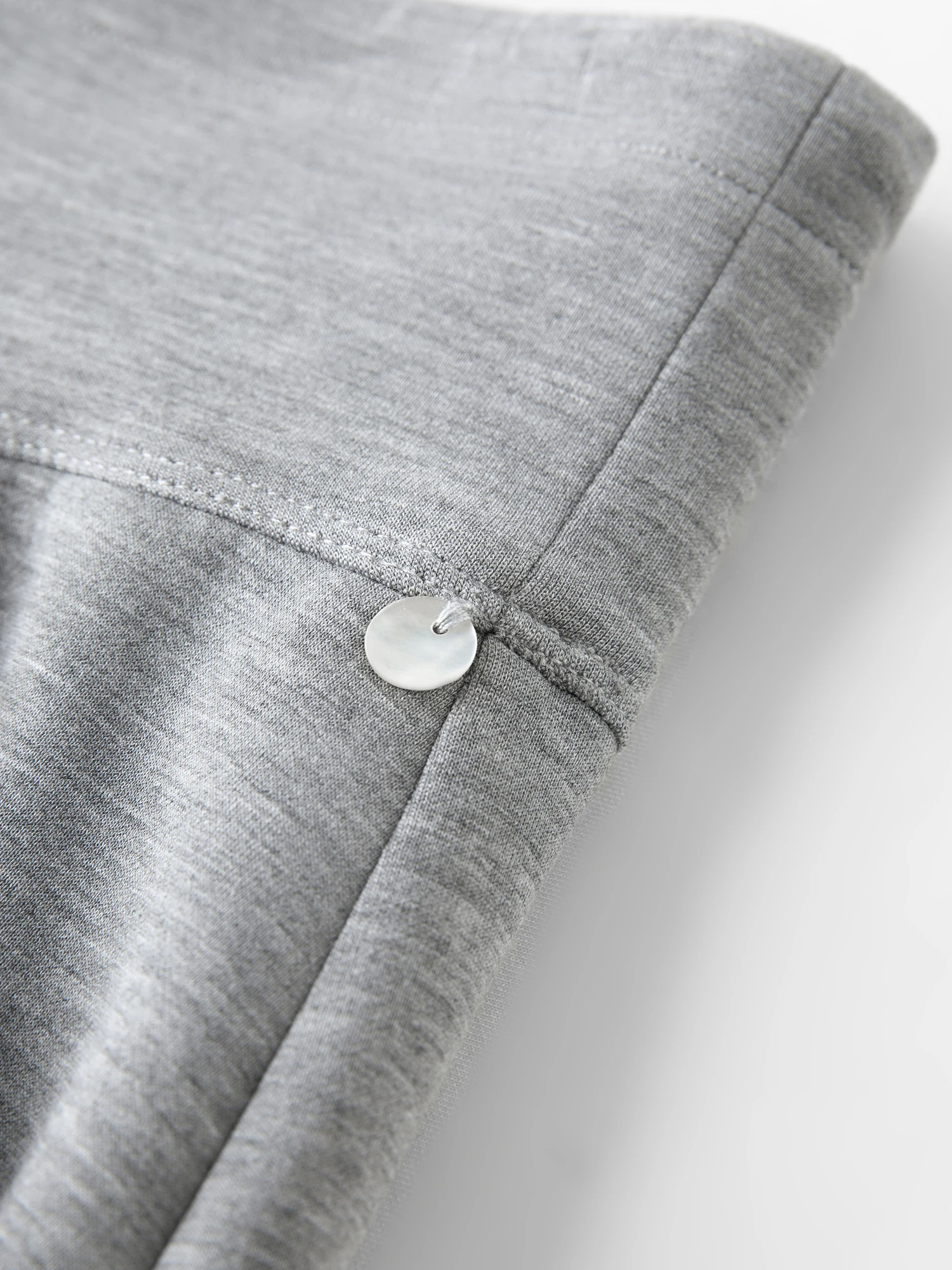 - Solid grey broadcloth knit with a slim fit