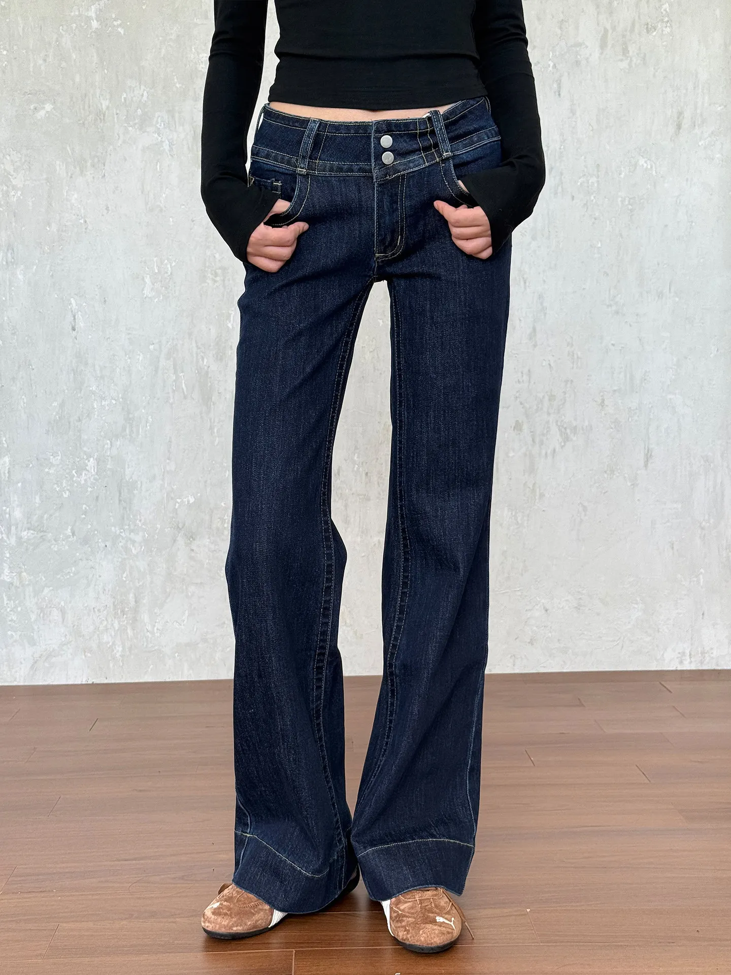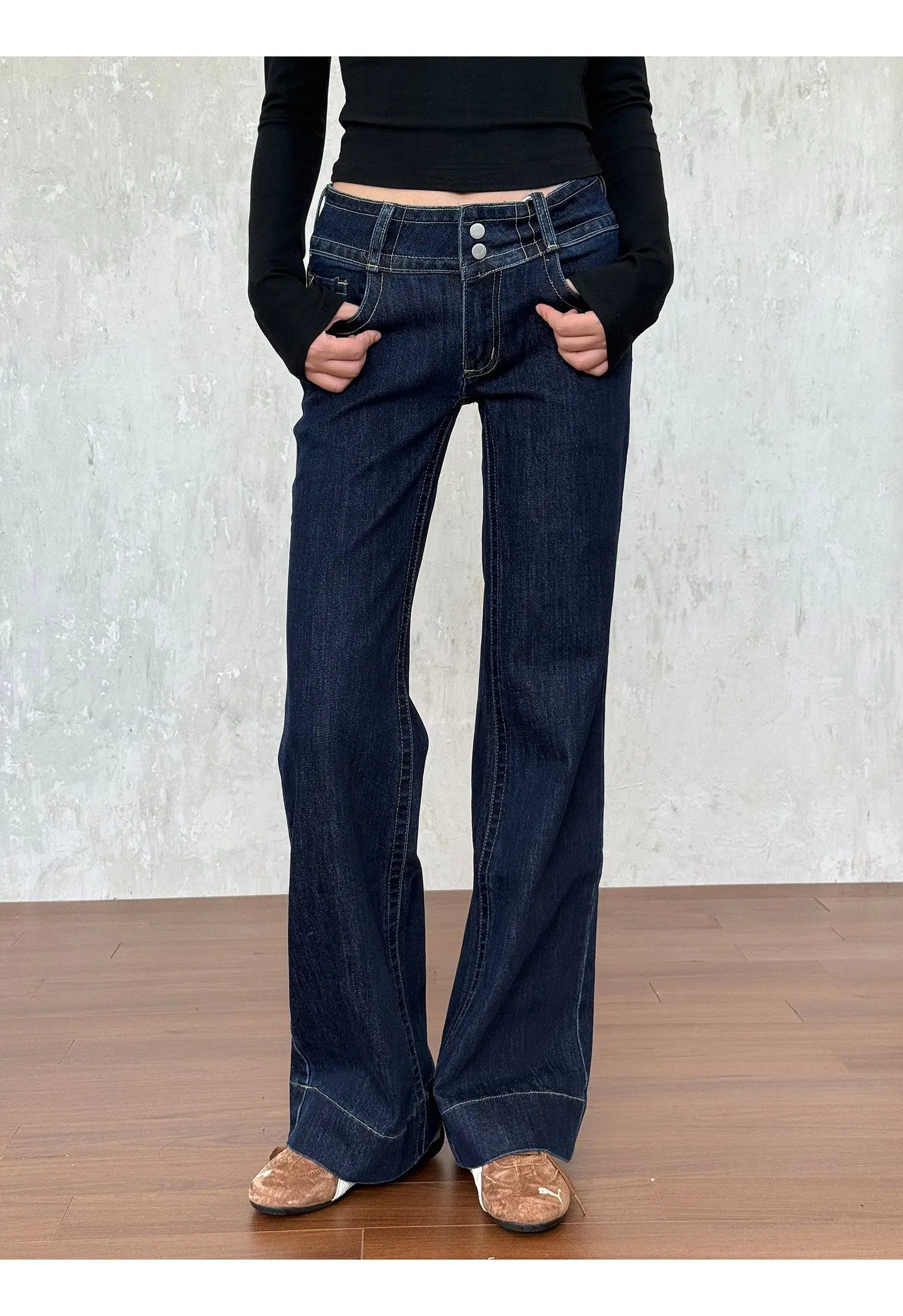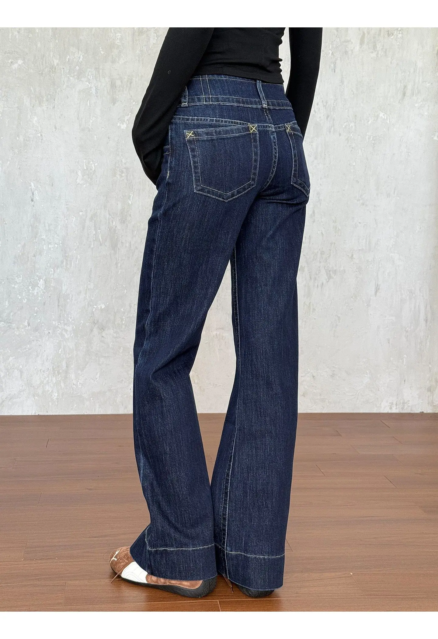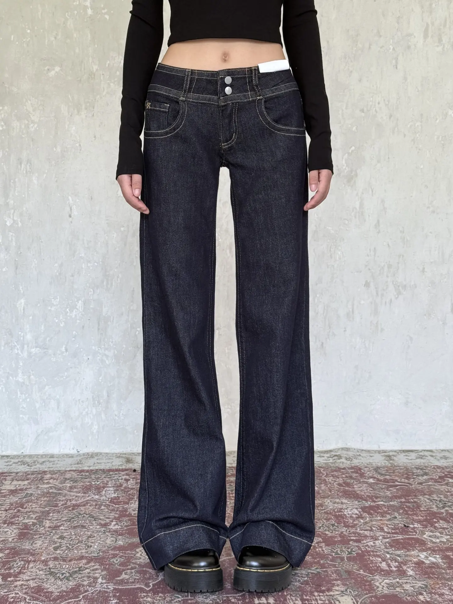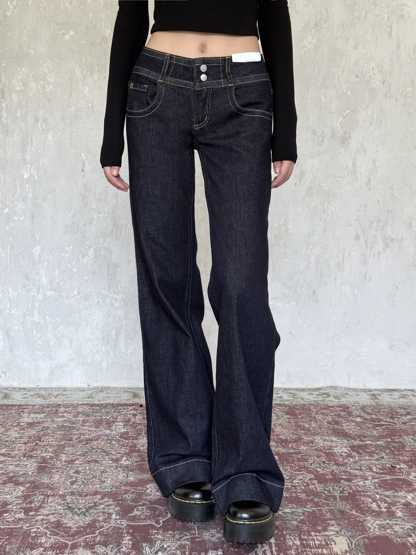 The fit is genuinely loose. Expect ease through the hip and thigh with no cling — this is not a slim-cut jean with a flared hem, but a relaxed shape throughout. The high waist sits at or just above the natural waistline, which helps anchor the proportions and keeps the silhouette balanced despite the volume below.