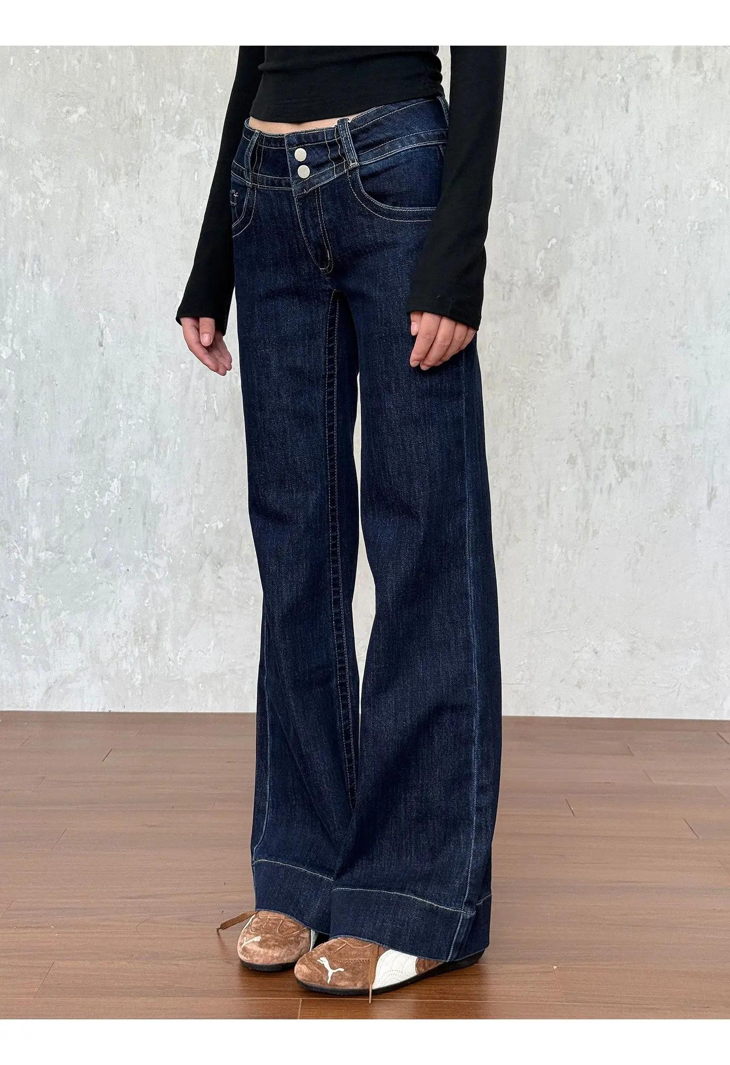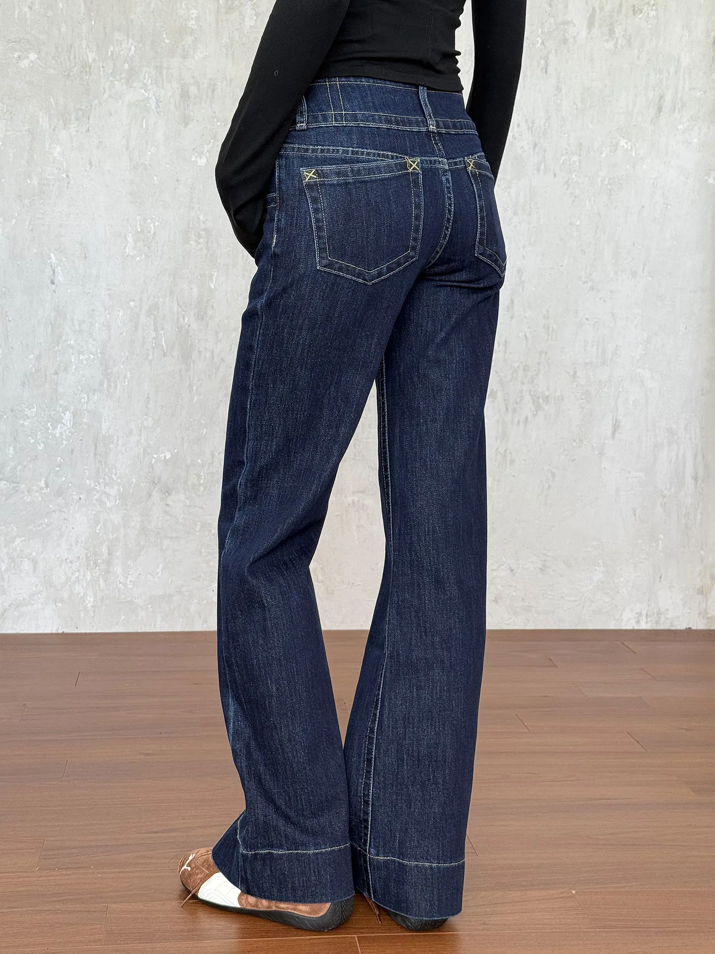 Wide Leg Denim Jeans in Blue — Loose Fit, Full Length