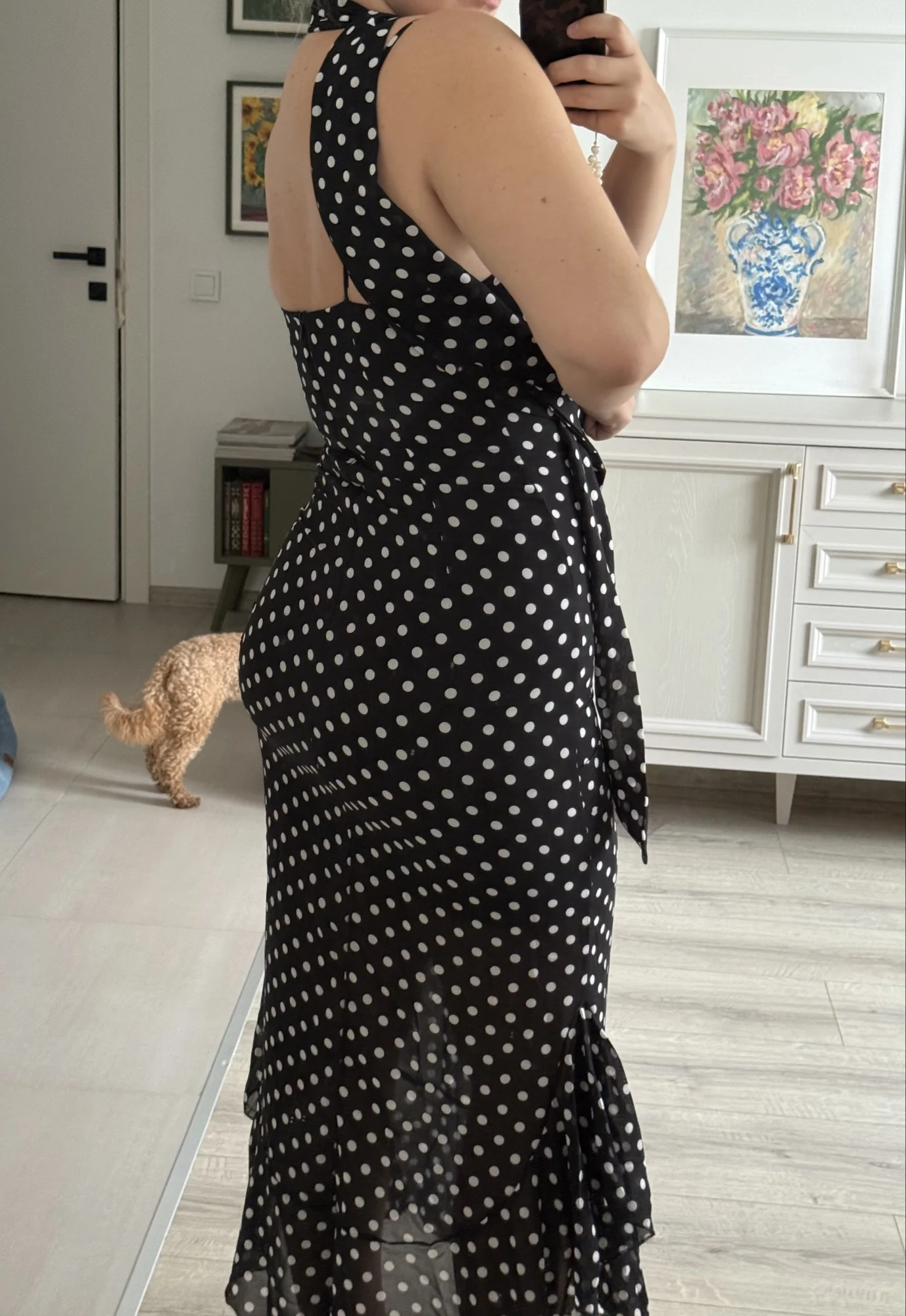 39 reviews for Luxury Sleeveless Polka Dot Halter Maxi, Pleated Ruffle Tie