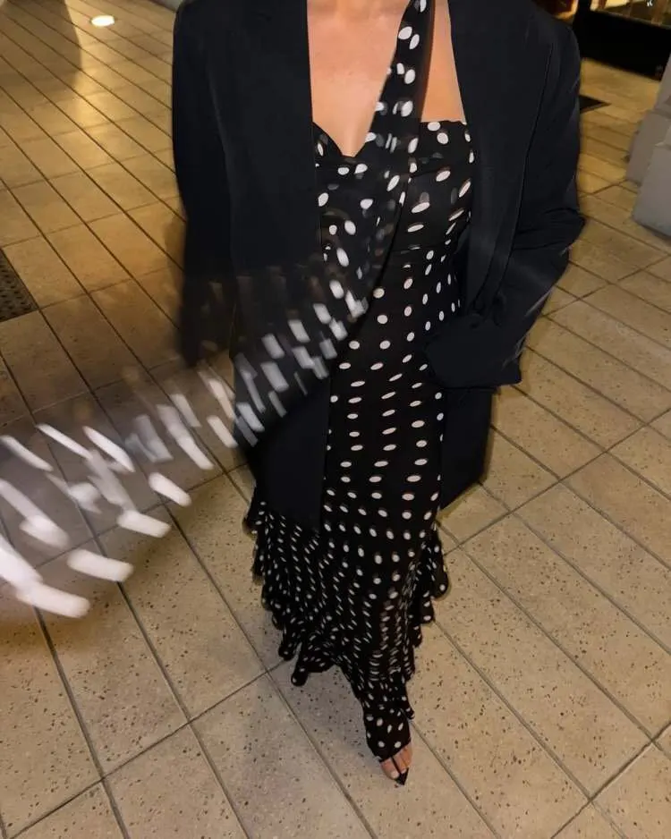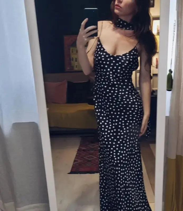 Introduction: A refined halter maxi in timeless polka dot—this pleated, ankle-length camisole dress pairs vintage romance with modern ease. Designed for Every Body, it offers Confidence in Every Fit and an Effortlessly Flattering silhouette for spring and summer moments.