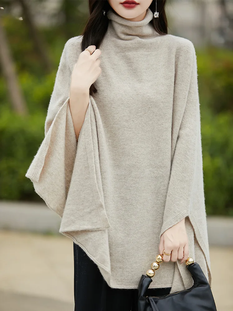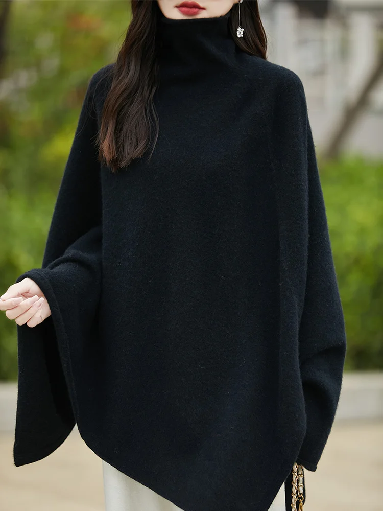 Medium-Length Wool Shawl Cape for Women, Sleeveless Casual Pullover