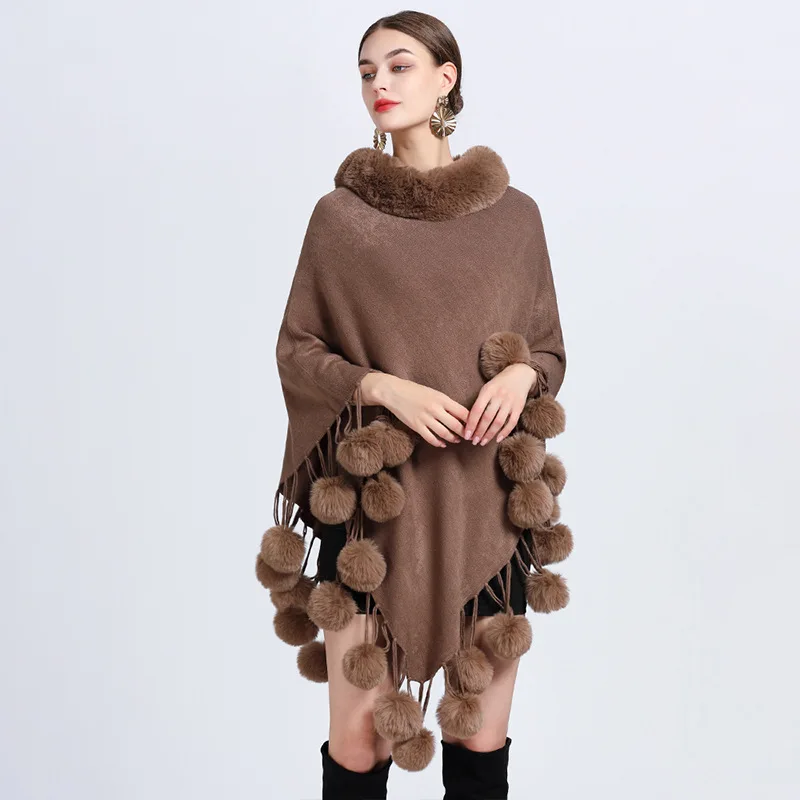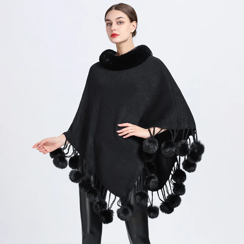 Mid-Length Slim Fit Women’s Cape Coat with Fur Collar