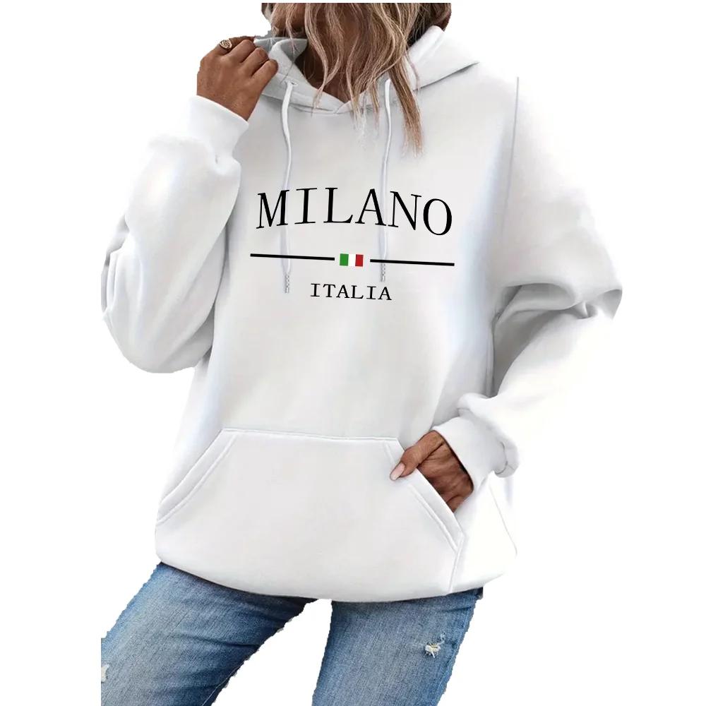 Milano Alphabet Print Women’s Pullover Hoodie – Cozy Winter