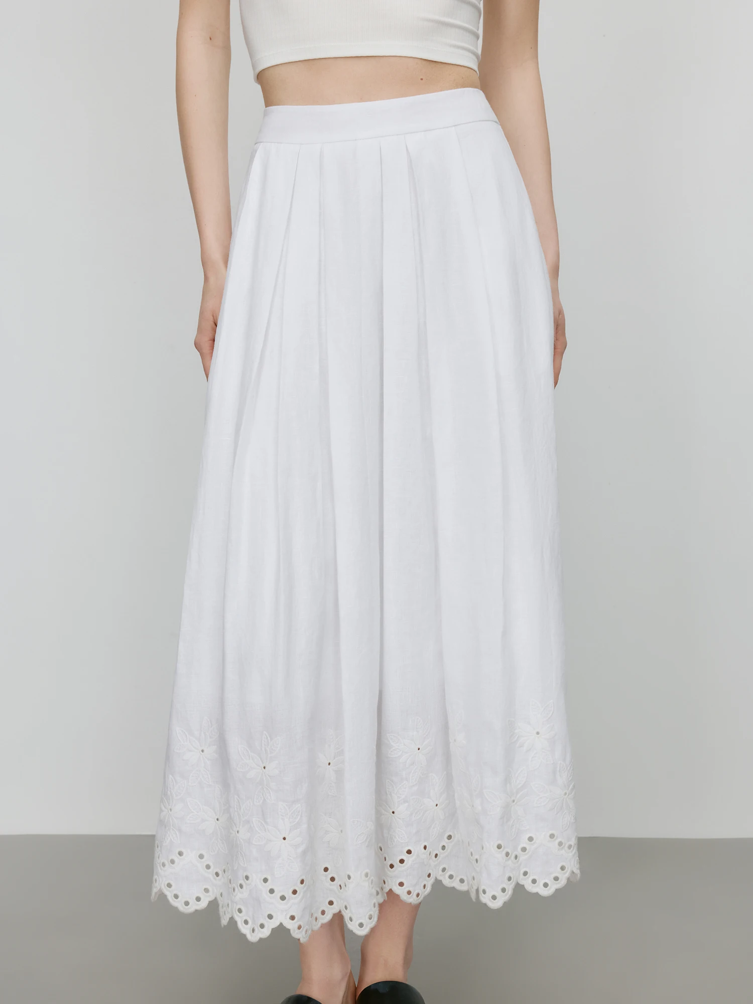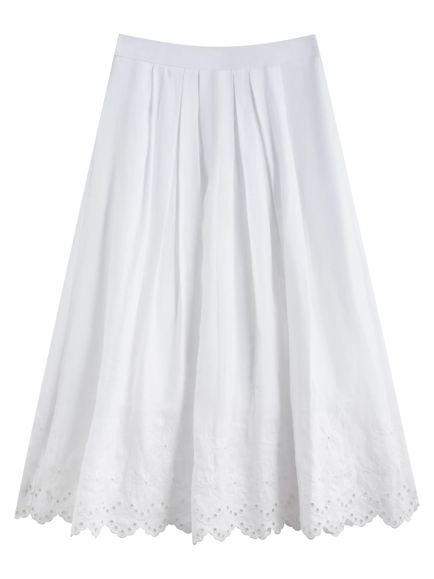 Minimalist Linen Casual Set with Lace Detail, Mid-Calf Skirt & Short-Sleeved Shi