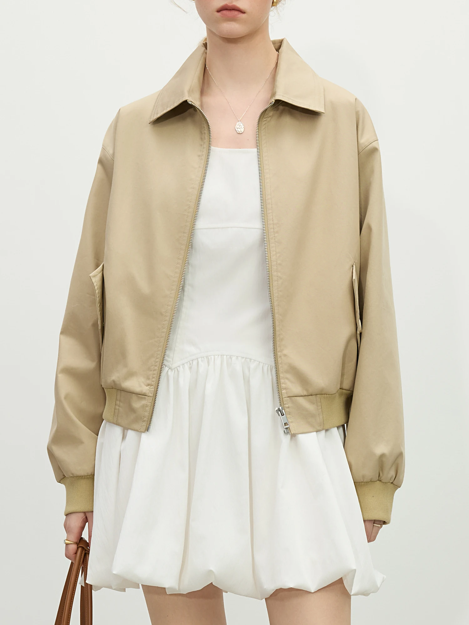 Q: Is this jacket suitable for office wear?A: Yes, its clean design and neutral khaki tone make it appropriate for professional environments as well as casual settings.