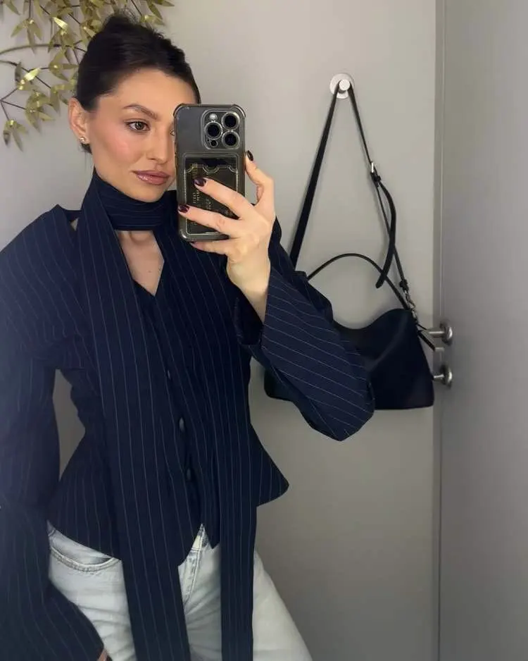 - Elegant V-neck blazer that enhances your neckline.