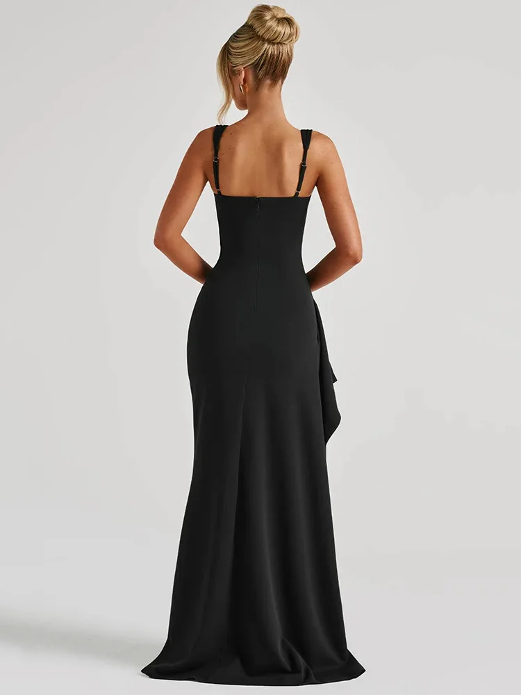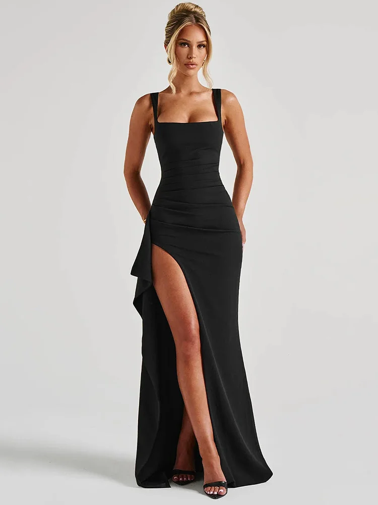 Elegant Black Backless Maxi Dress with Thigh-High Split