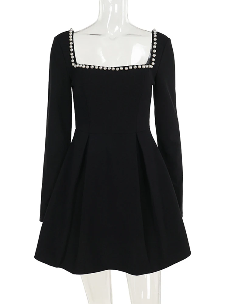 Chic Moopsi Pearl Square Neck Mini Dress for Effortless Style