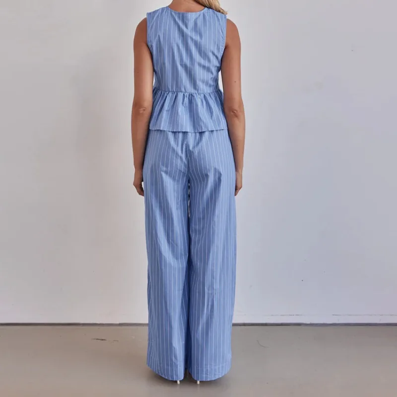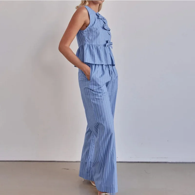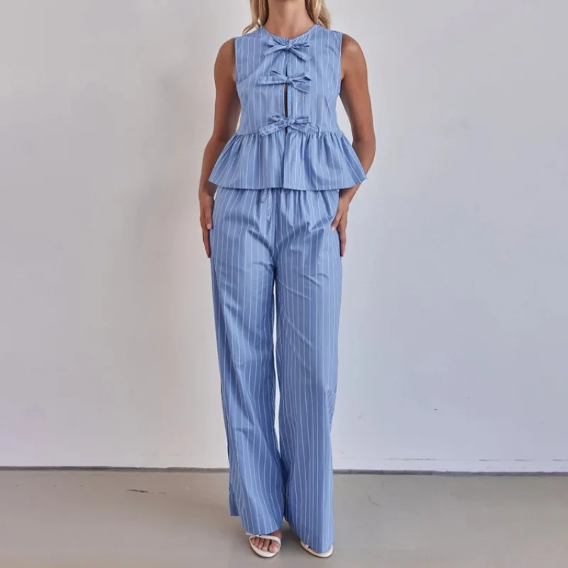 Step into your next adventure with the Striped Bowknot Sleeveless Top and Loose Pant Set—where everyday elegance meets modern style.