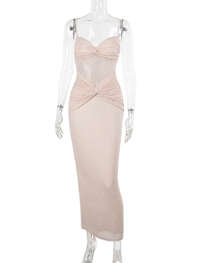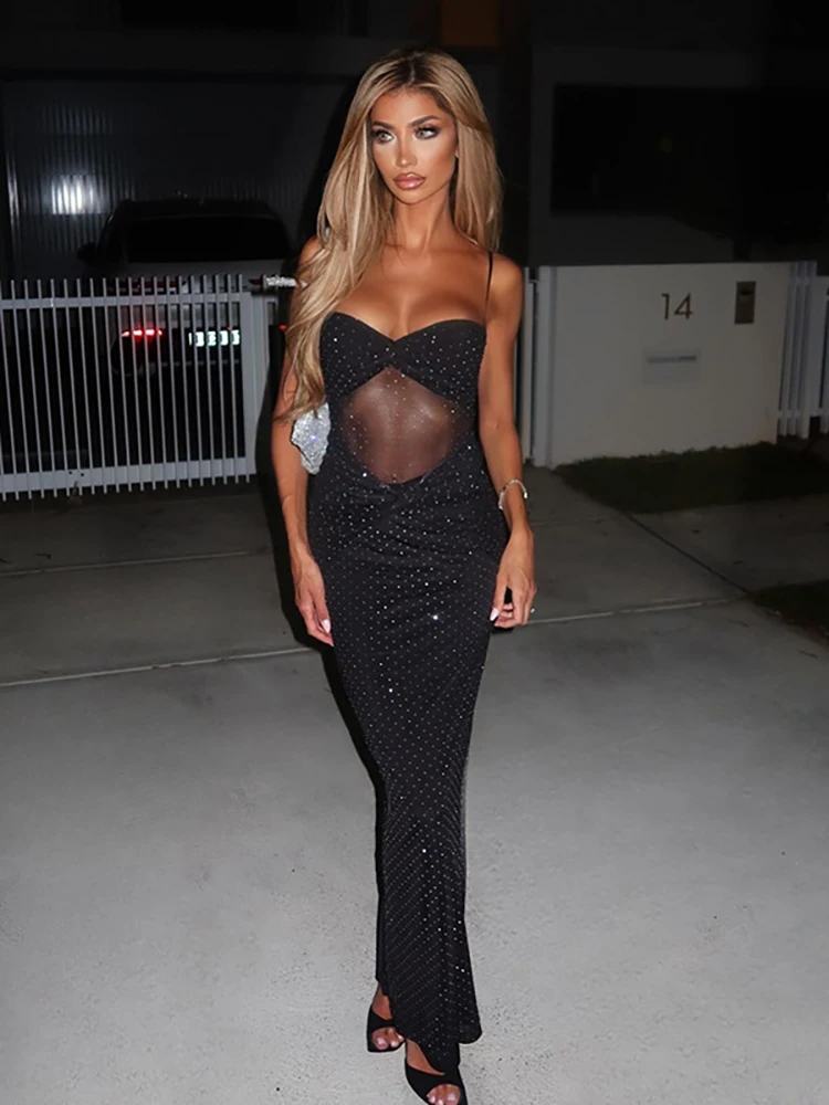 Glamorous Backless Maxi Dress with Diamond Detail for Parties