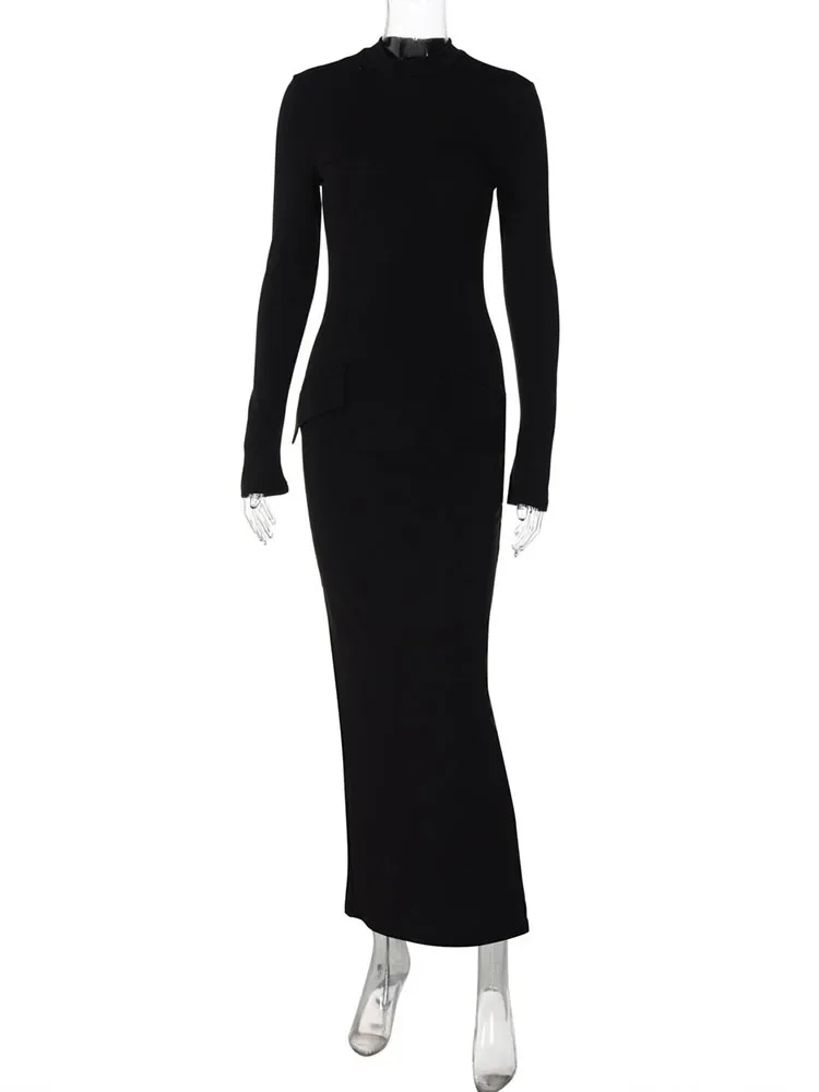 Elegant Half Turtleneck Maxi Dress with Chic Back Slit