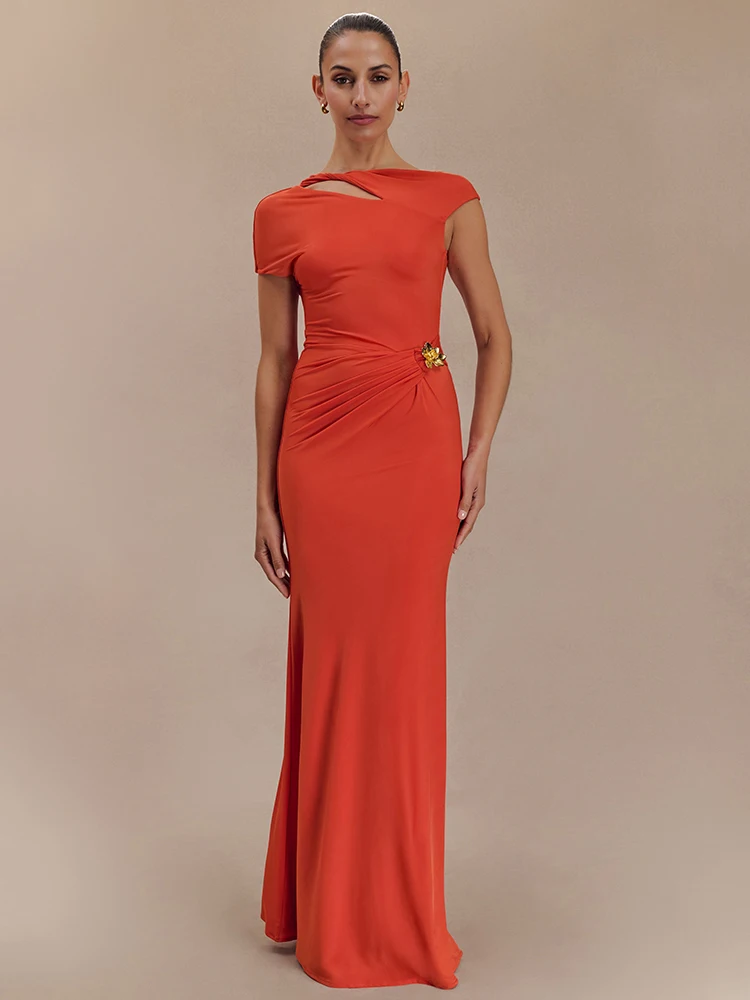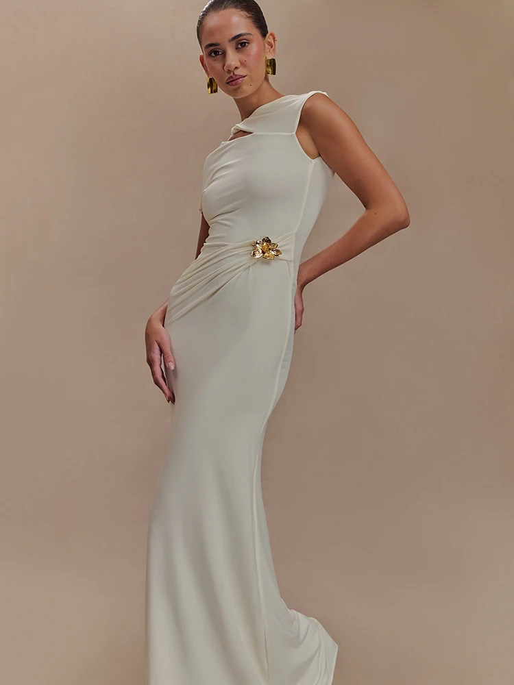 Luxurious Elegance Awaits: The Hollow Out Gold Clasp Maxi Dress
