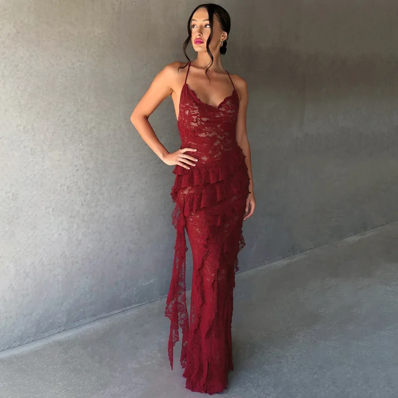 Step into a world of timeless elegance with our Lace Ruffled Spaghetti Strap Dress, designed to celebrate your unique beauty at every occasion. This stunning dress is the perfect blend of sophistication and modern flair, making it an essential addition to your wardrobe for summer parties, weddings, or any special event. With its exquisite lace detailing and captivating silhouette, this dress will have you feeling confident and beautiful.