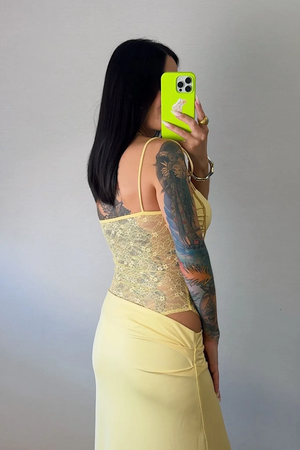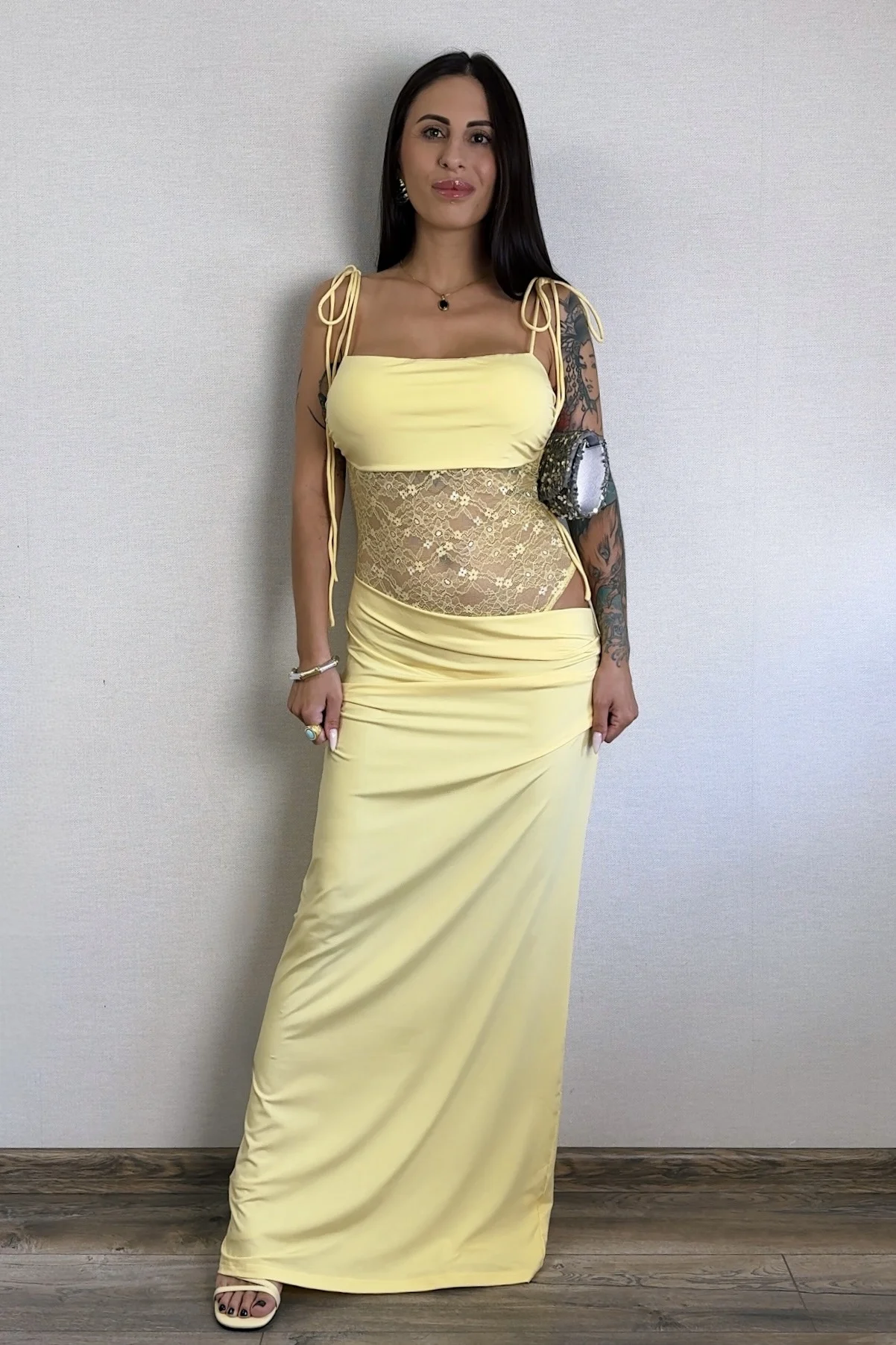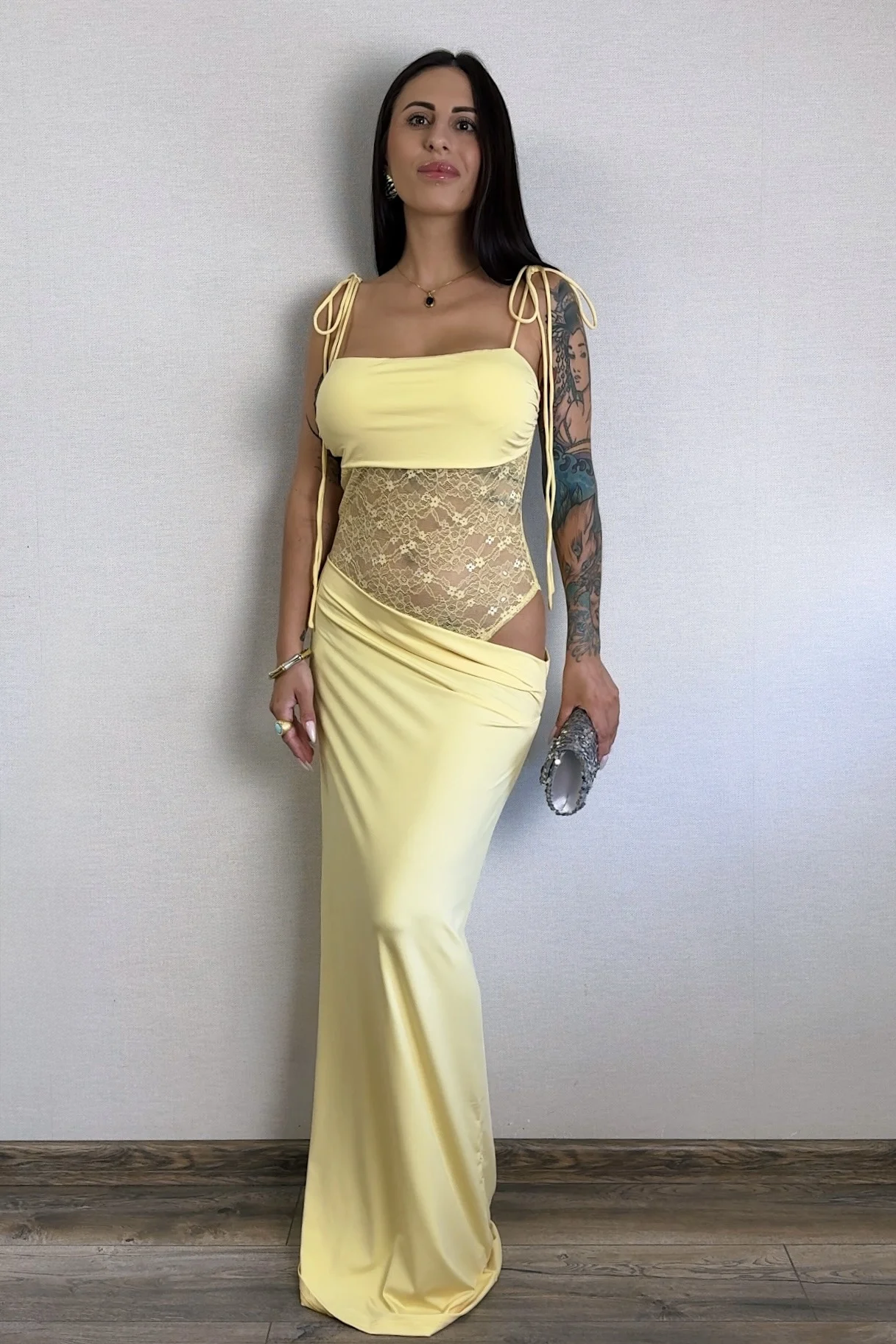Elegant Lace Splice Spaghetti Strap Dress for Summer Events