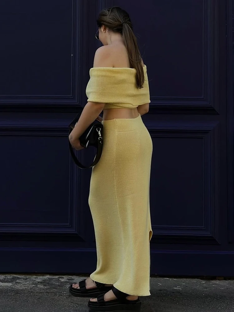 Chic One-Shoulder Knitted Skirt Set for Effortless Elegance