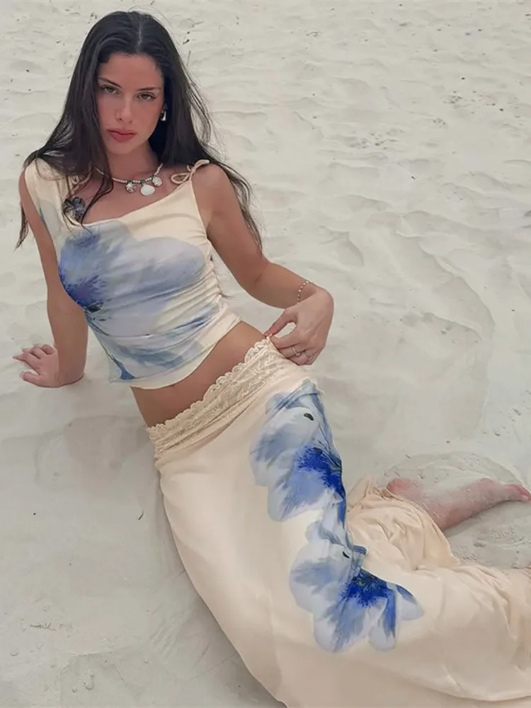 Indulge in Elegance with the Print Beach Skirt Two Piece Set