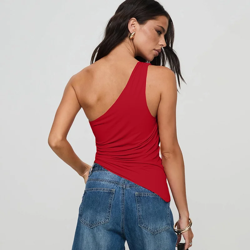 Stunning Red One Shoulder Backless Summer Tank for Women