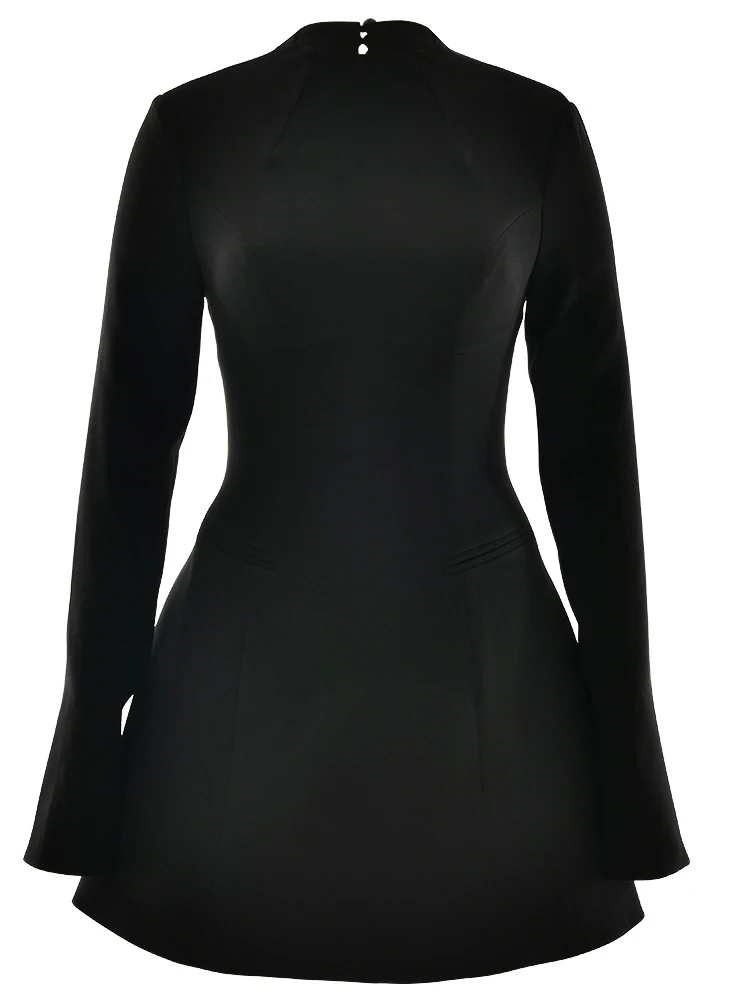 Elegant Black Backless A-Line Blazer Dress for Autumn Events