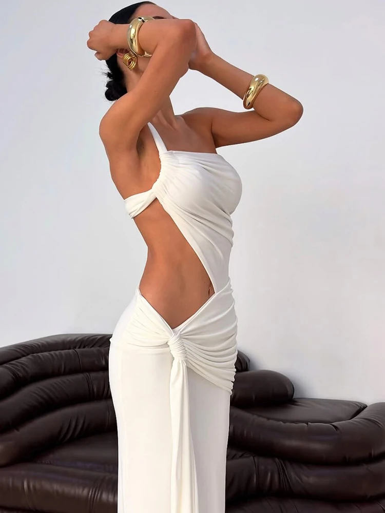 Elegant One Shoulder Maxi Dress – Backless Summer Style
