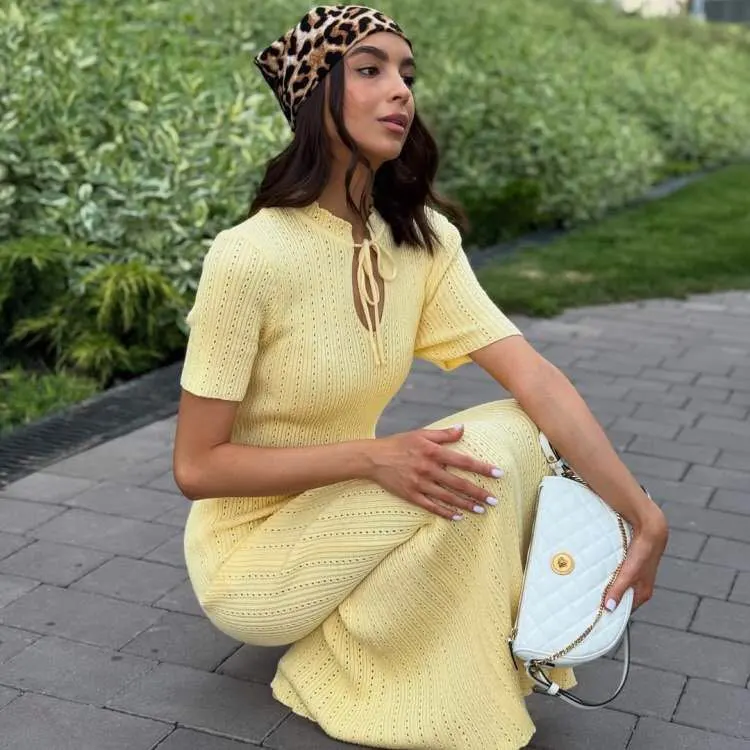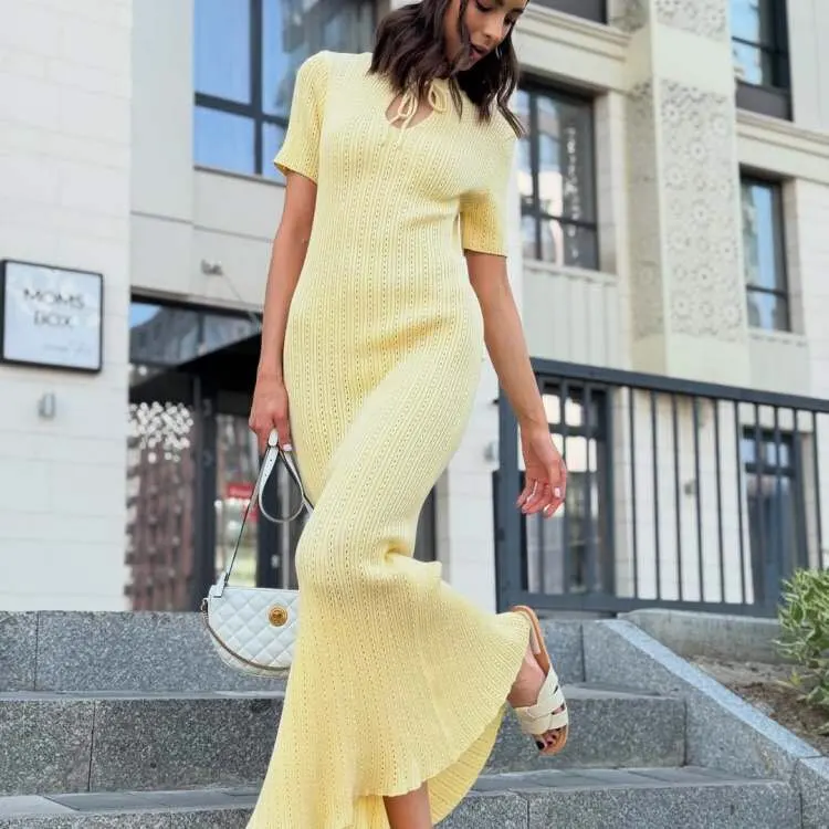 21 reviews for Moopsi Short Sleeve Knitted Long Dress Female Hollow Retro Elegant Sweater Dress Summer New High Waist Women‘s Dress