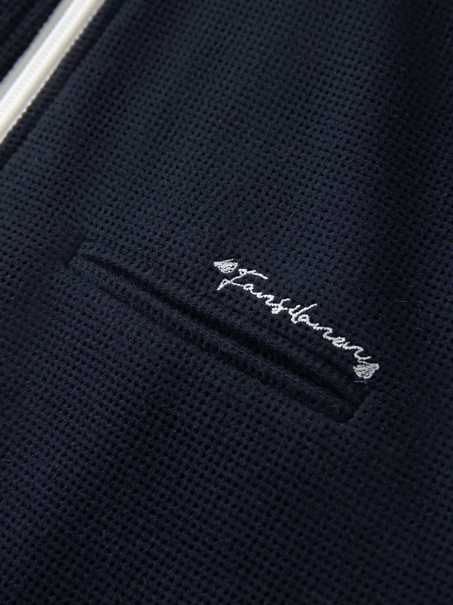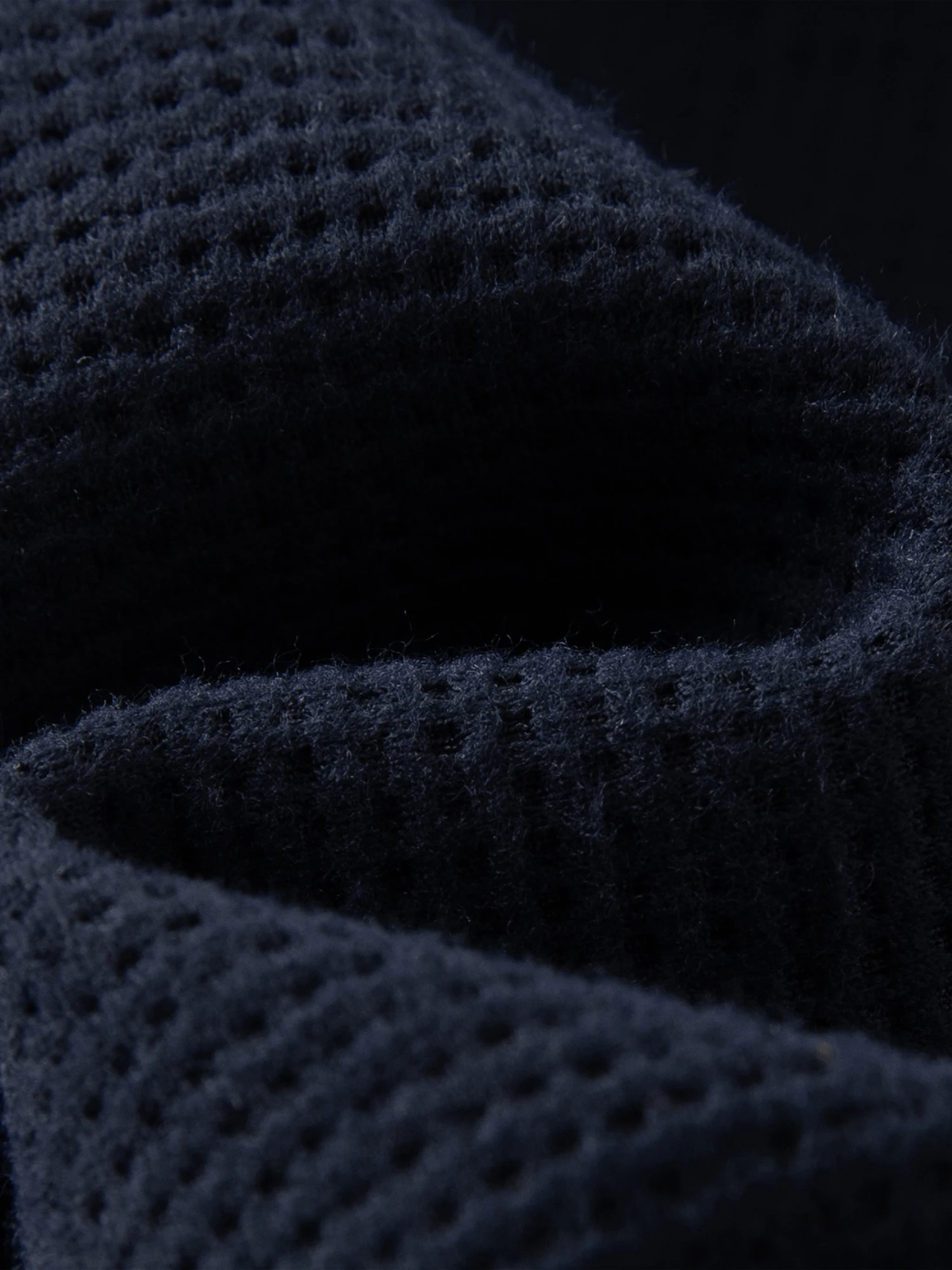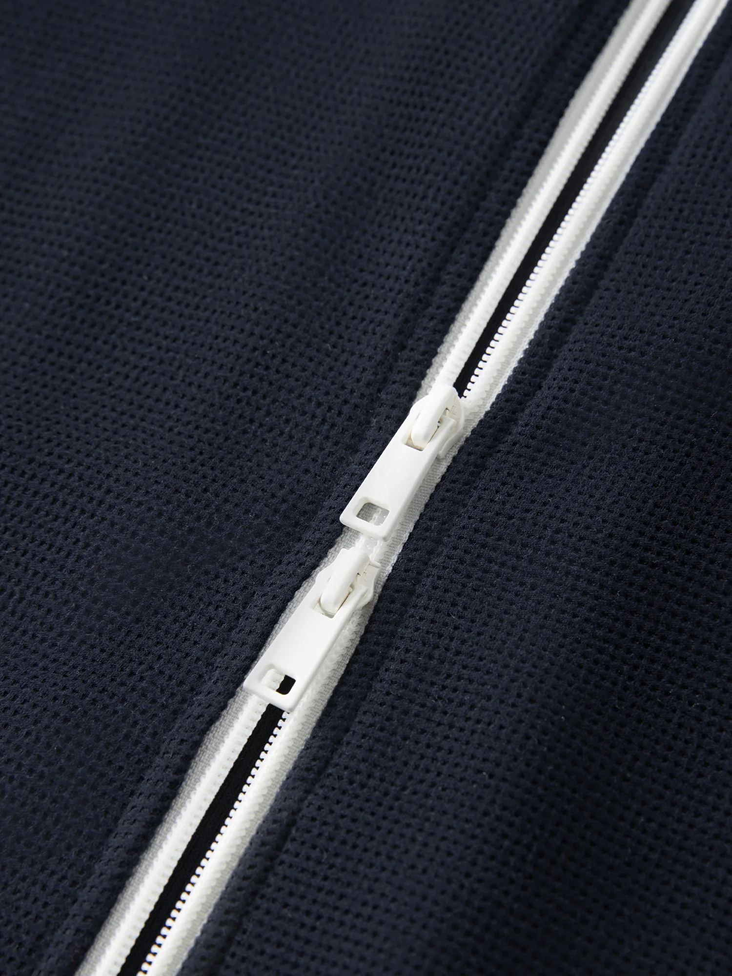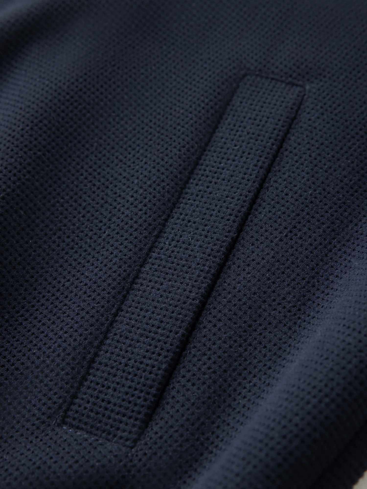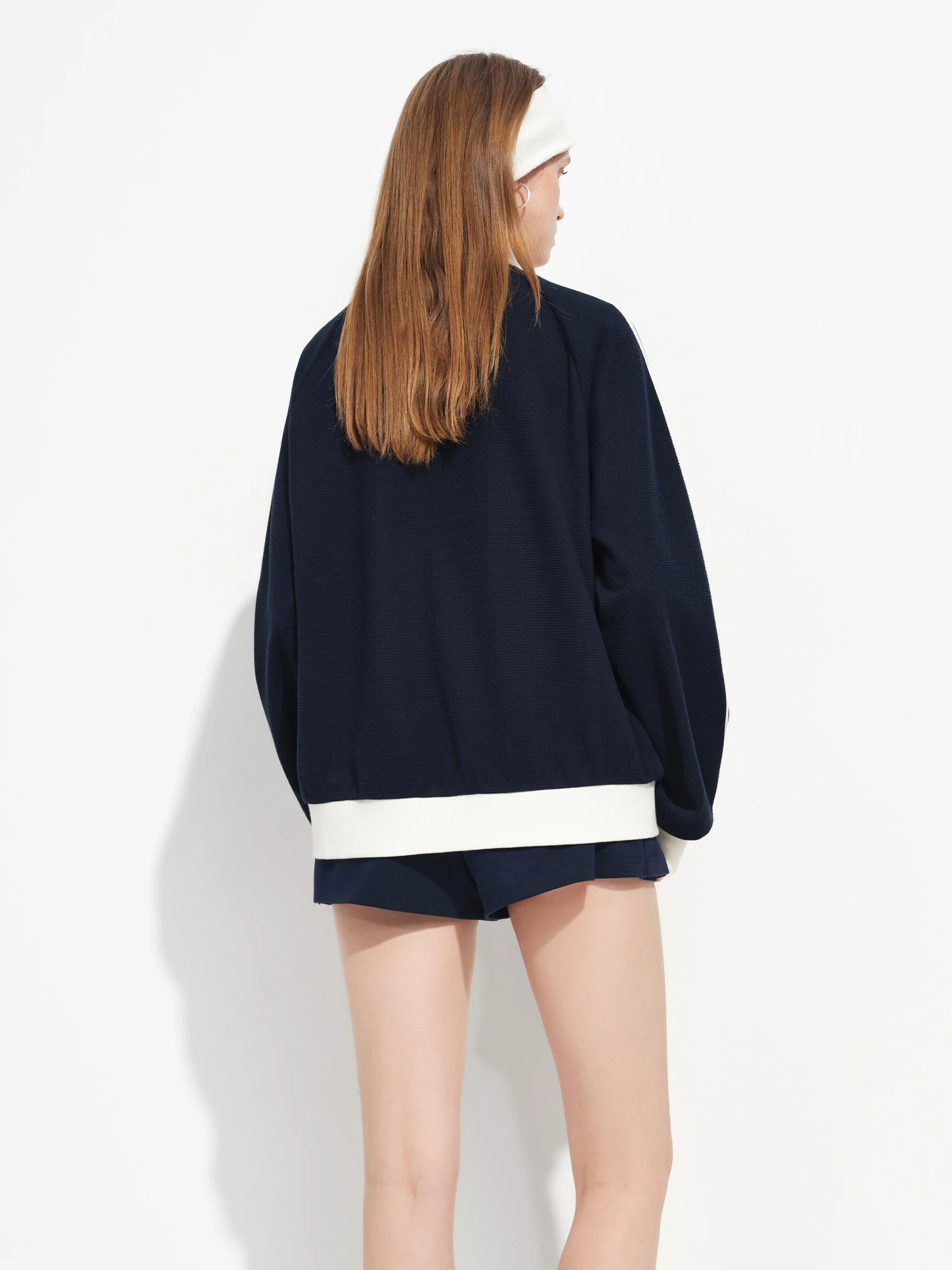 Navy Blue Stand Collar Waffle Knit Jacket with Double Zipper
