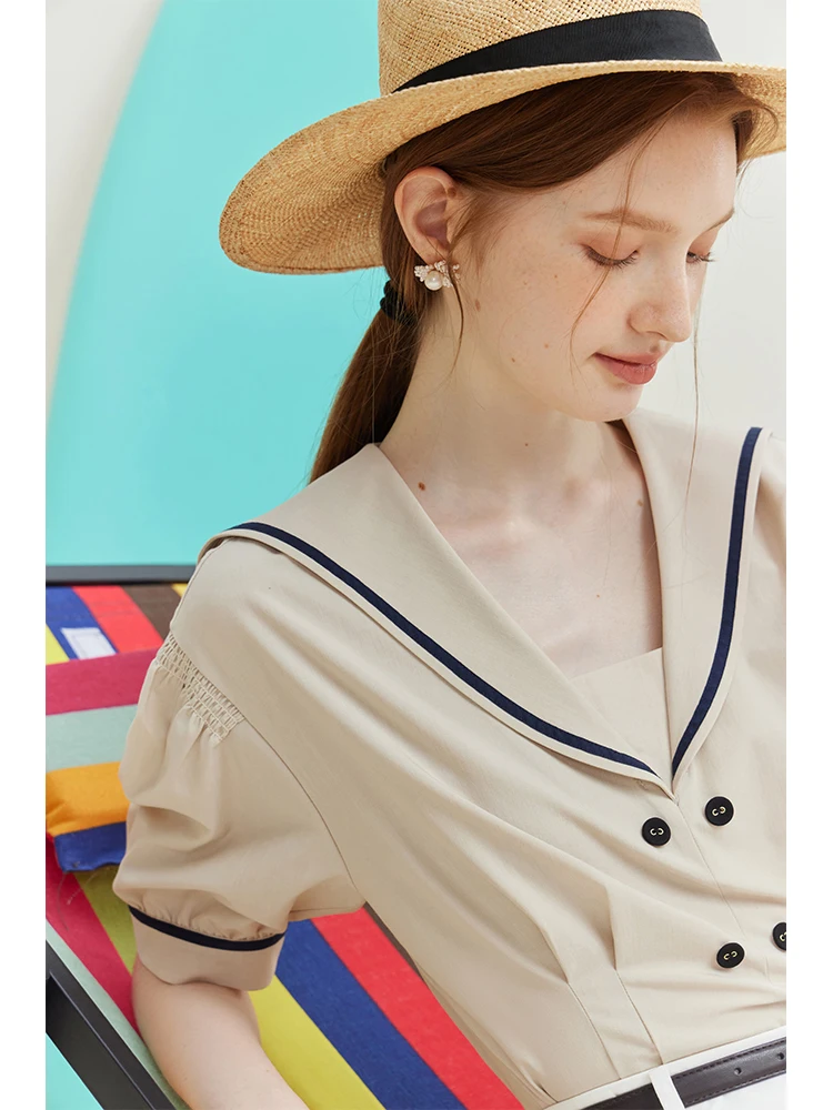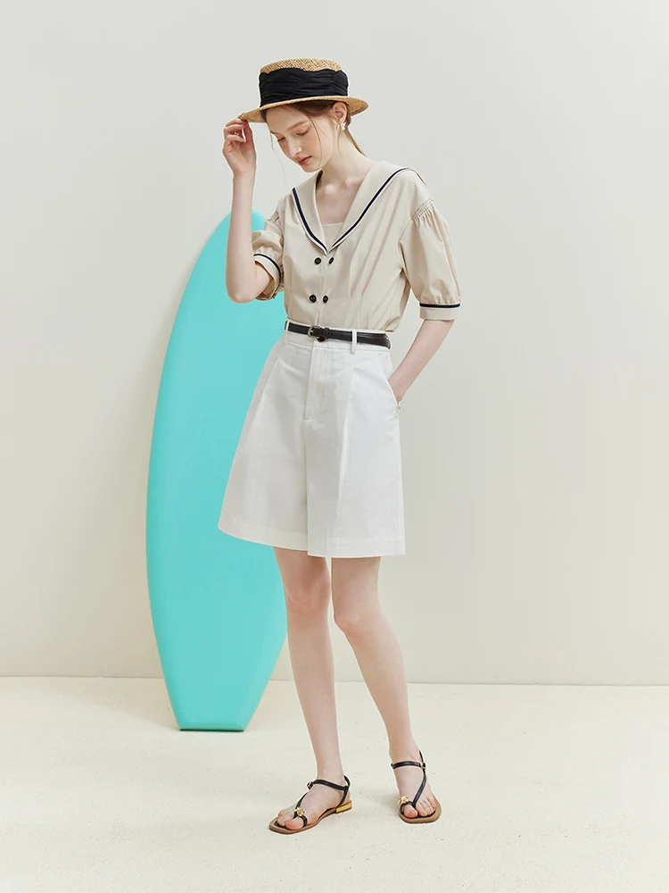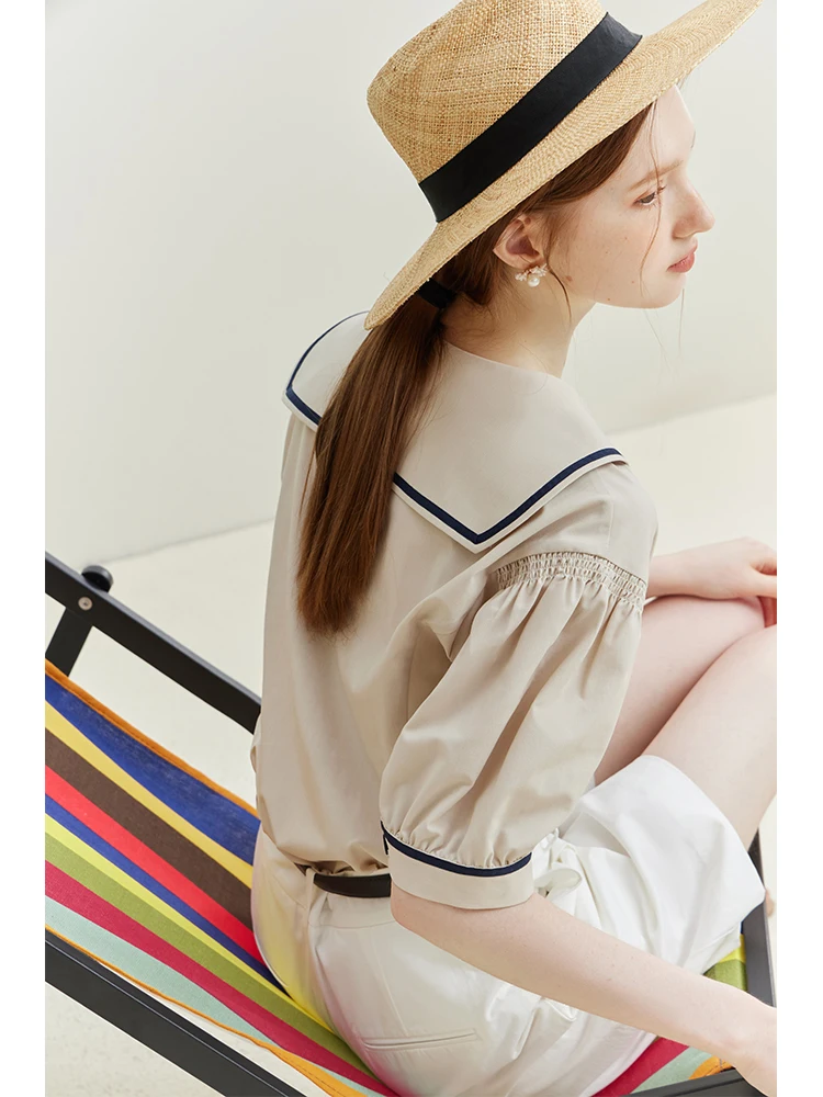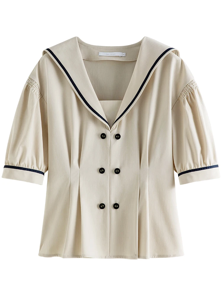 1 review for Navy Style V-neck Short-sleeved Shirt for Women
