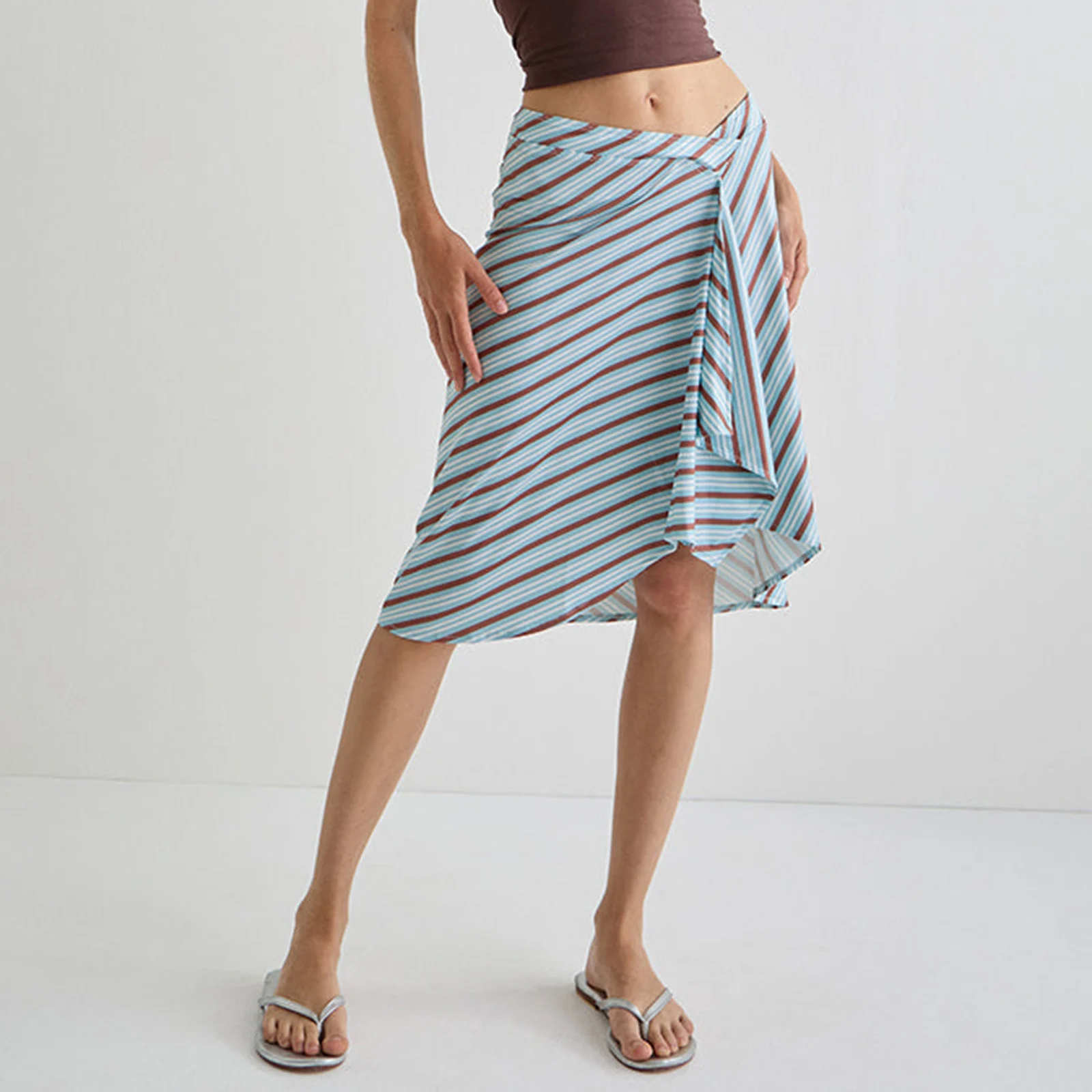 Discover refined style with our Women’s Midi Skirt in elegant stripes and plaid. Designed for those who appreciate polished simplicity, this A-line skirt offers a flattering silhouette that gently skims mid-calf, ideal for spring and summer occasions.