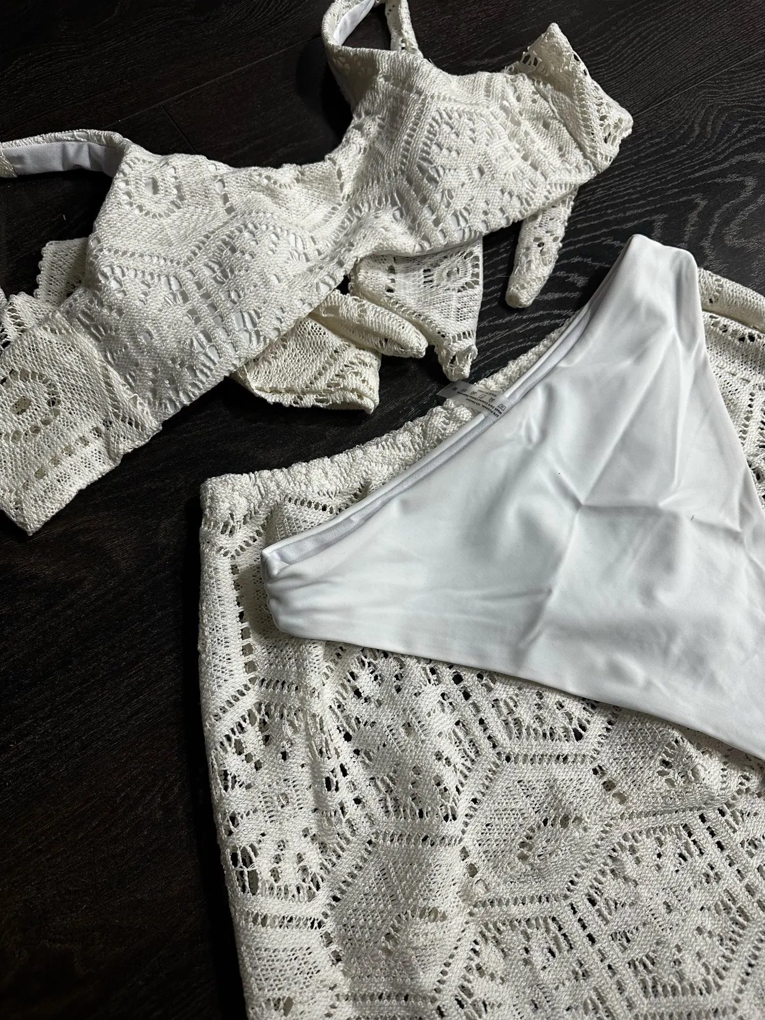 Elegant 3-Piece Hollow Out Beachwear Set for Sophisticated Women