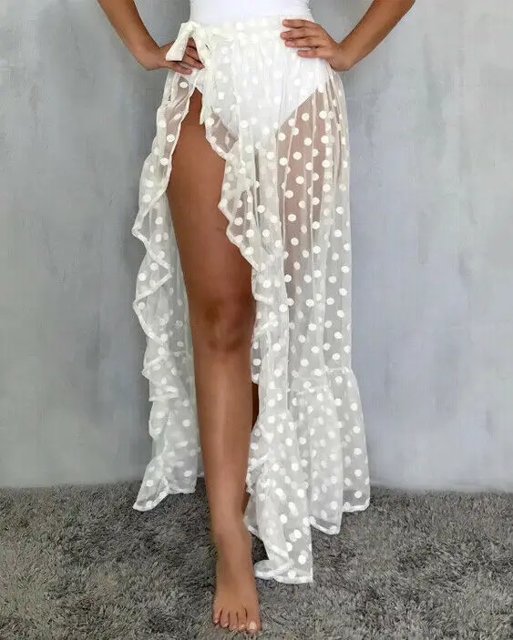 Polka Dot Mesh Beach Wrap Skirt – Summer Resort Maxi