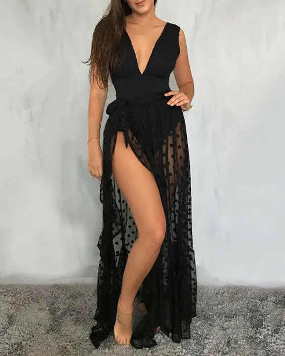 The New Hot Summer Women’s Mesh Sheer Polka Dot Long Split Skirt is not just a piece of clothing; it is an essential component of your summer escapades. Picture yourself at a beachside bar, sipping a cocktail while the gentle ocean breeze dances around you. This skirt provides the perfect balance of coverage and style, making it ideal for: