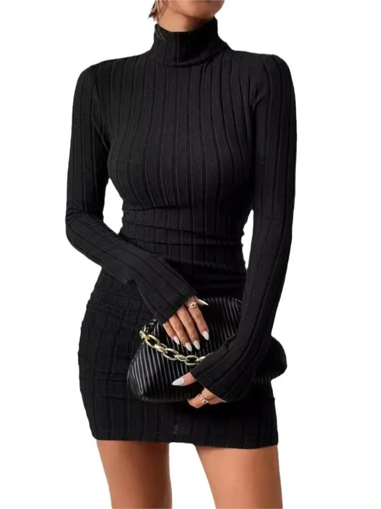 Chic Turtleneck Bodycon Mini Dress for Elegant Autumn Nights