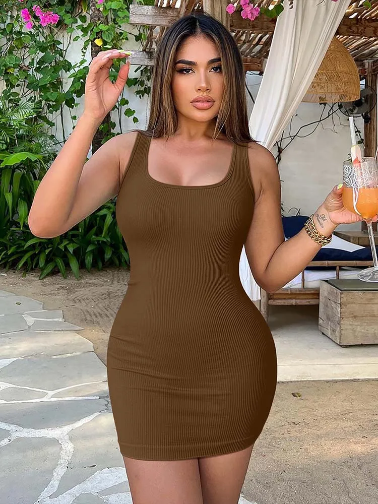 Embrace the allure of simplicity and sophistication with our New Solid Round Neck Tank Top Wrapped Dress, where comfort meets contemporary style.