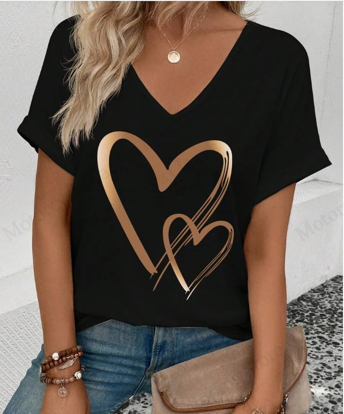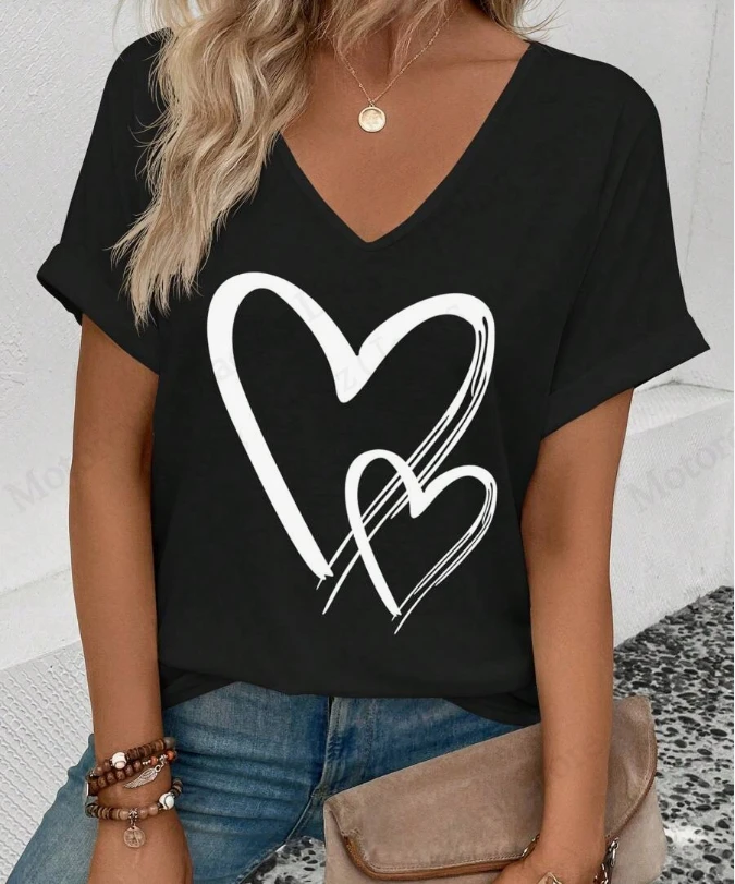 Embrace your unique style with the New Women’s V-Neck Flare Cuff Love Design T-shirt—a perfect blend of elegance and casual charm, designed to celebrate the vibrant spirit of every woman.
