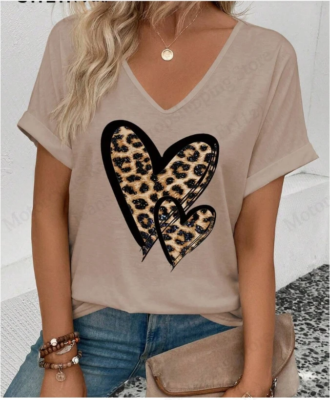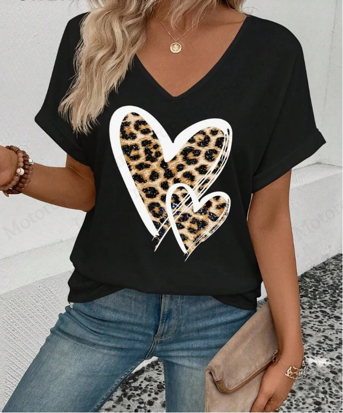 Step into a world where fashion meets comfort with the New Women’s V-Neck Flare Cuff Love Design 3D Leopard Print T-shirt. This exquisite piece is designed for the modern woman who desires elegance without sacrificing casual ease. The captivating leopard print, adorned with a playful love design, is not just a statement; it’s an expression of individuality.