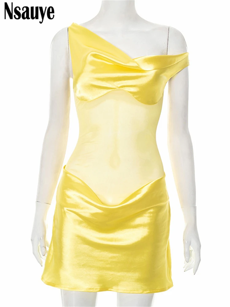 Nsauye Chic Fashion Elegant Satin Mini Sleeveless Night Club Dress