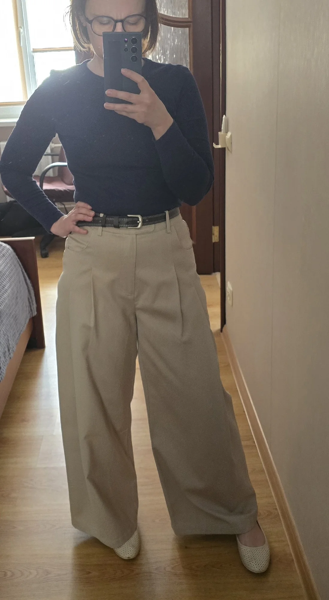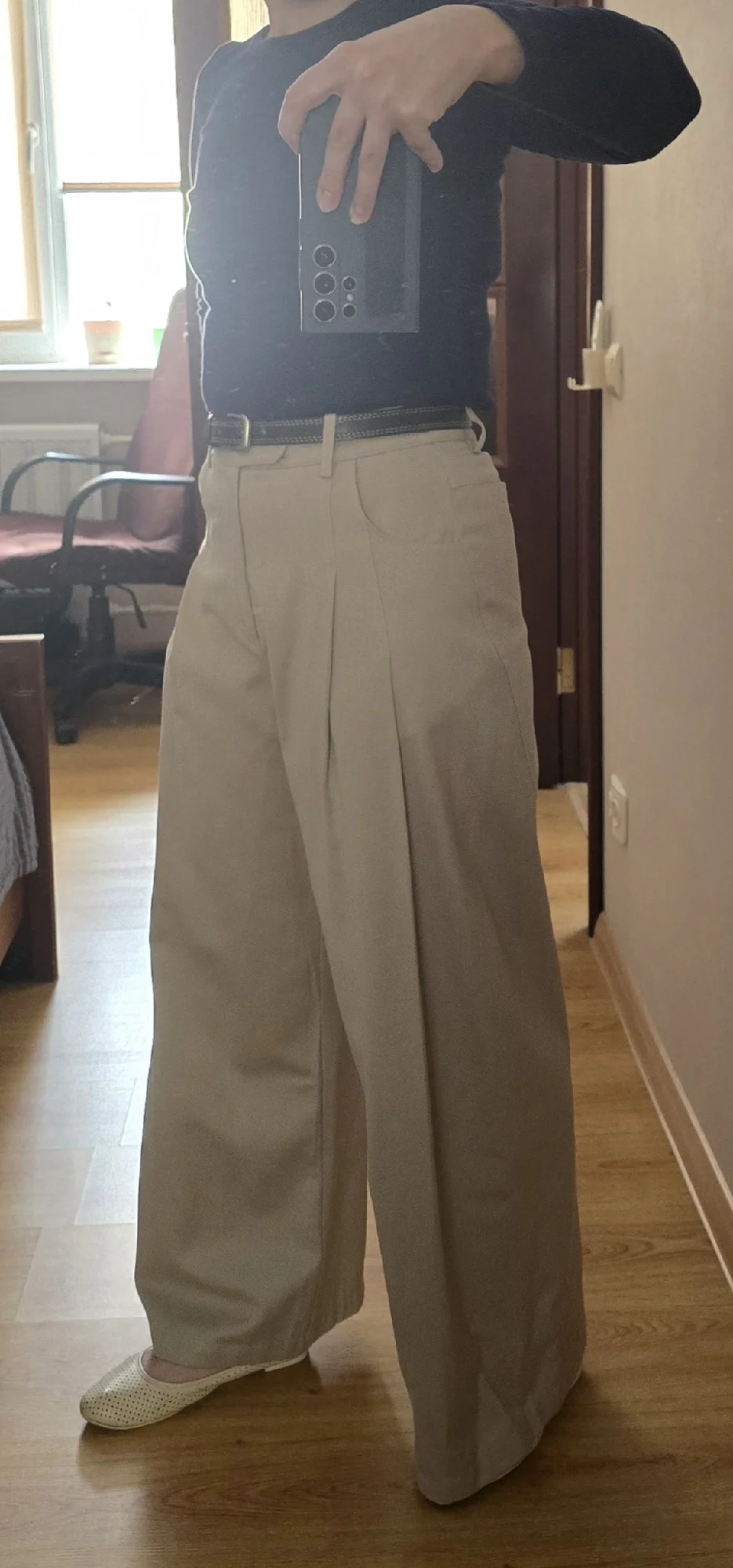 As a result, it sat well in the waist, doesn’t press it, there’s room to fix something. The hips are also not bad, not too much, but the rear inner pocket passes through on the top, apparently it will have to be ripples.