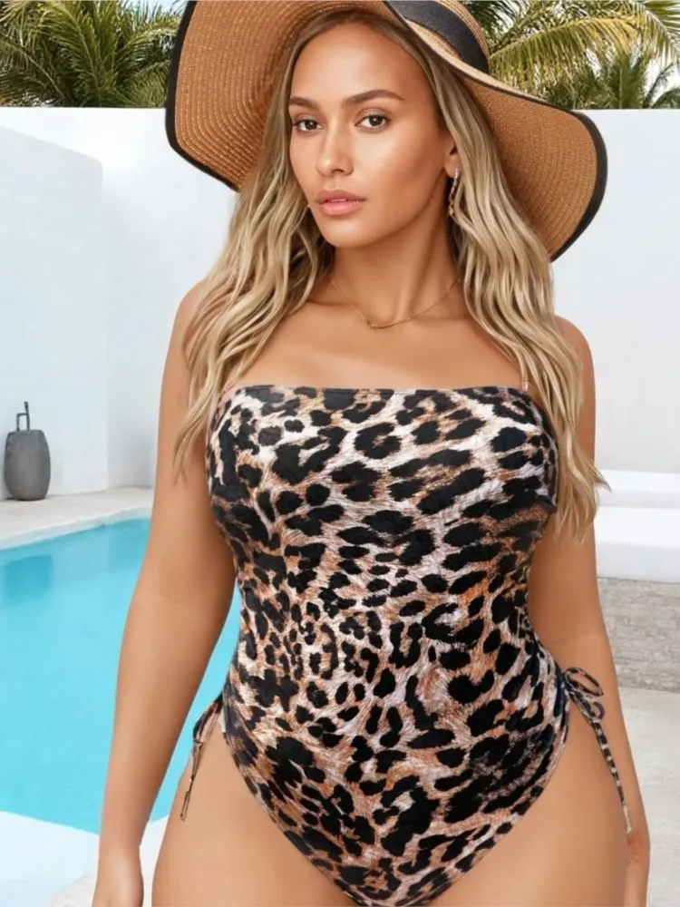 Unveil your summer elegance with this luxurious one-piece bikini set, designed for every body. Featuring a flattering high waist and tummy control, it enhances your natural beauty while providing ultimate comfort. The chic leopard pattern and wire-free support create a confident, stylish look for beach days. Available in extended sizes, this swimwear is perfect for embracing summer with sophistication.
