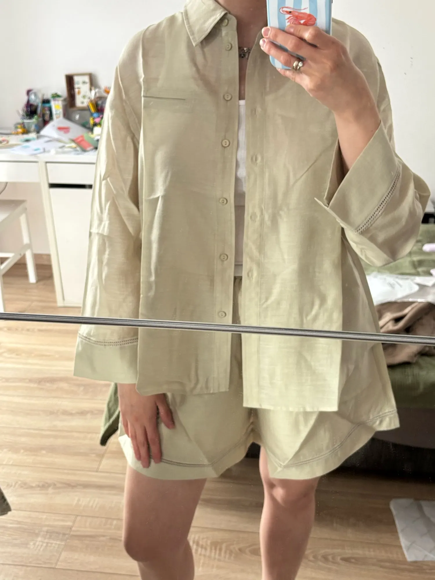 Chic Crochet Linen Petite Outfit – Breezy Two-Piece Set